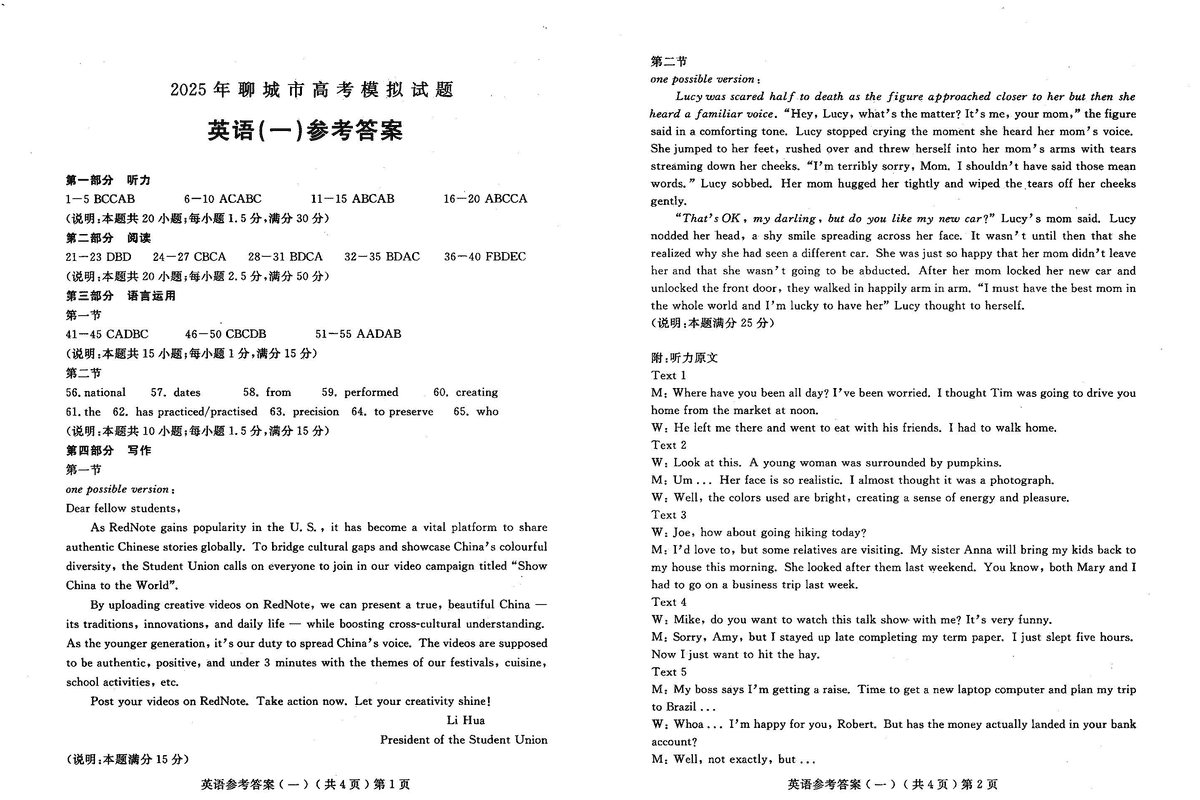 山东聊城一模2025年高三学业水平等级模拟卷英语考试已于近日开考,为方便考生考后及时查看考试情况,查漏补缺、弥补不足,本文整理了试题答案解析相关信息!