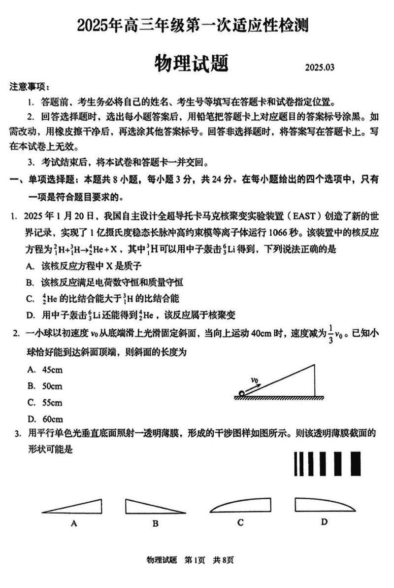 青岛一模2025年高三年级第一次适应性检测物理考试已于近日开考,为方便考生考后及时查看考试情况,查漏补缺、弥补不足,本文整理了试题答案解析相关信息!