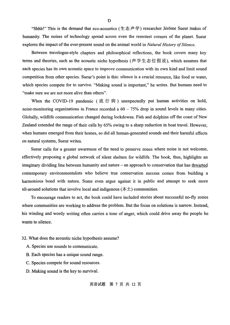 英语试题及答案解析