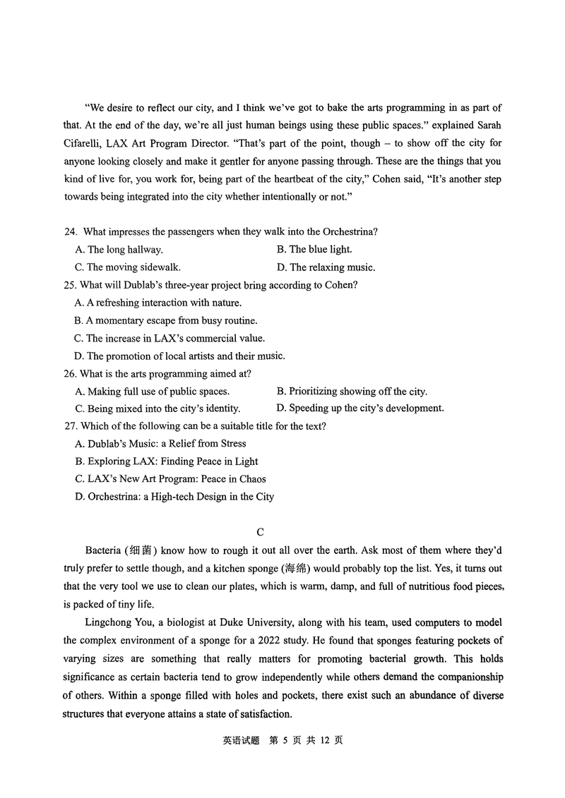 青岛一模2025年高三年级第一次适应性检测英语试题及答案