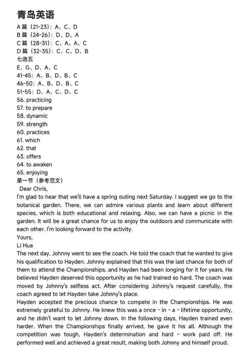 青岛一模2025年高三年级第一次适应性检测英语考试已于近日开考,为方便考生考后及时查看考试情况,查漏补缺、弥补不足,本文整理了试题答案解析相关信息!