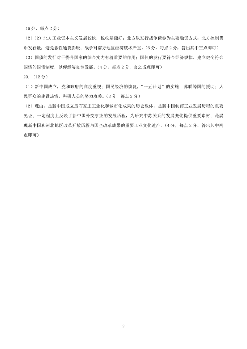 2025届石家庄市高三教学质量检测(一)历史试题及答案