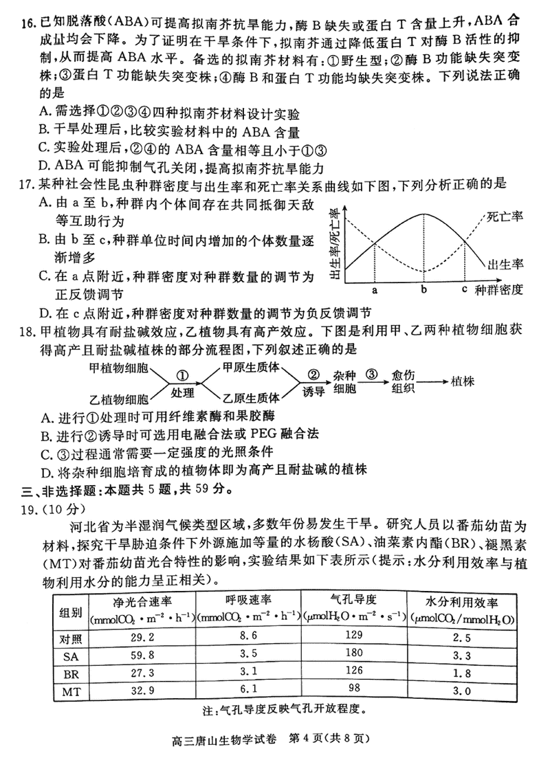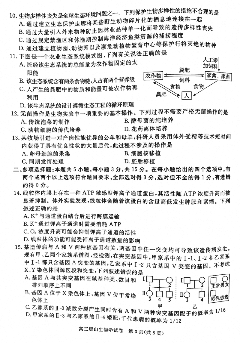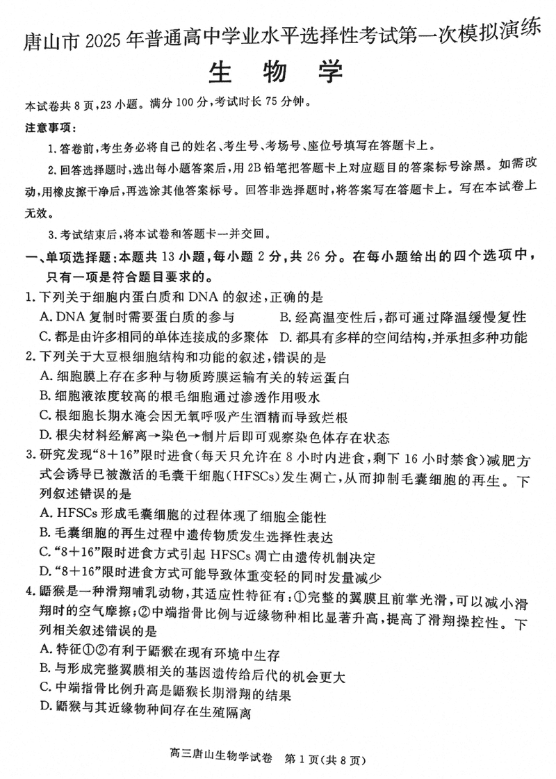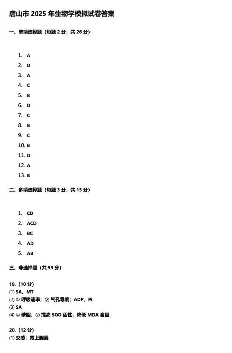 唐山一模2025年普通高等院校招生第一次拟演练生物考试已于近日开考,为方便考生考后及时查看考试情况,查漏补缺、弥补不足,本文整理了试题答案解析相关信息!