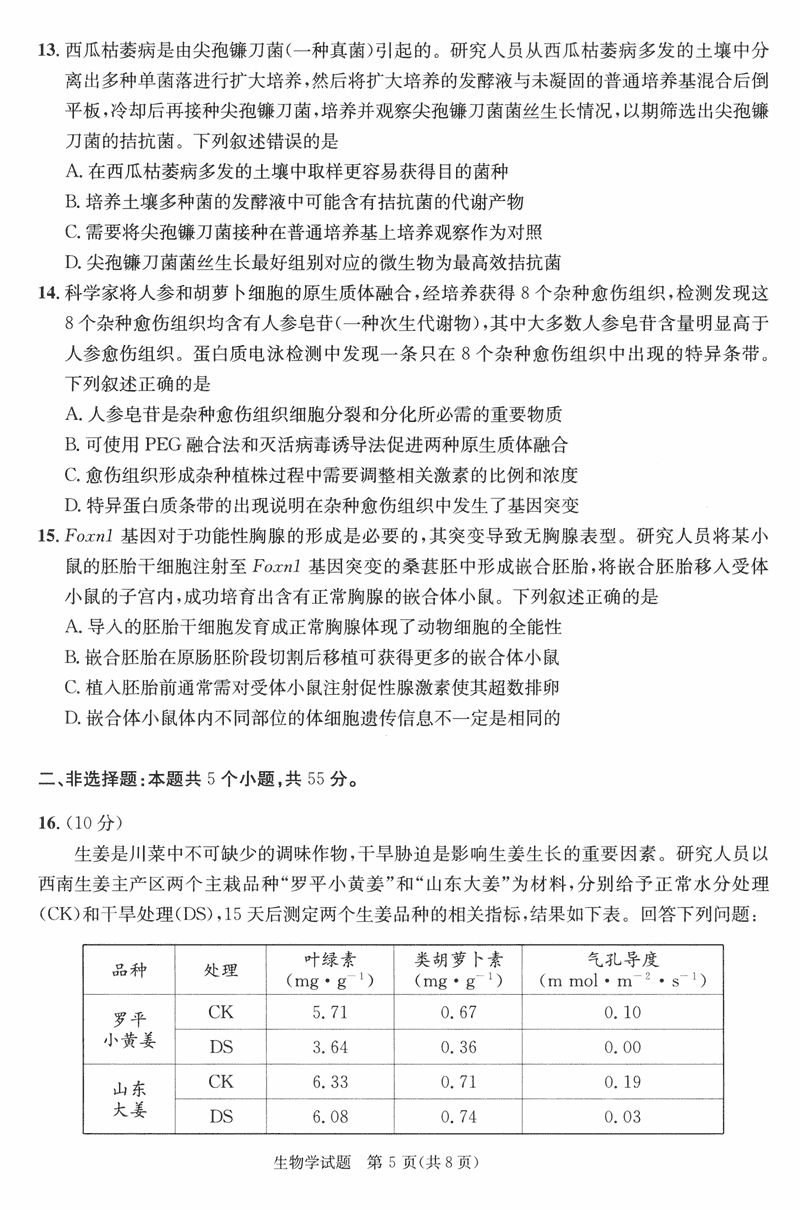 四川成都2025届高三第二次诊断性检测生物试题及答案