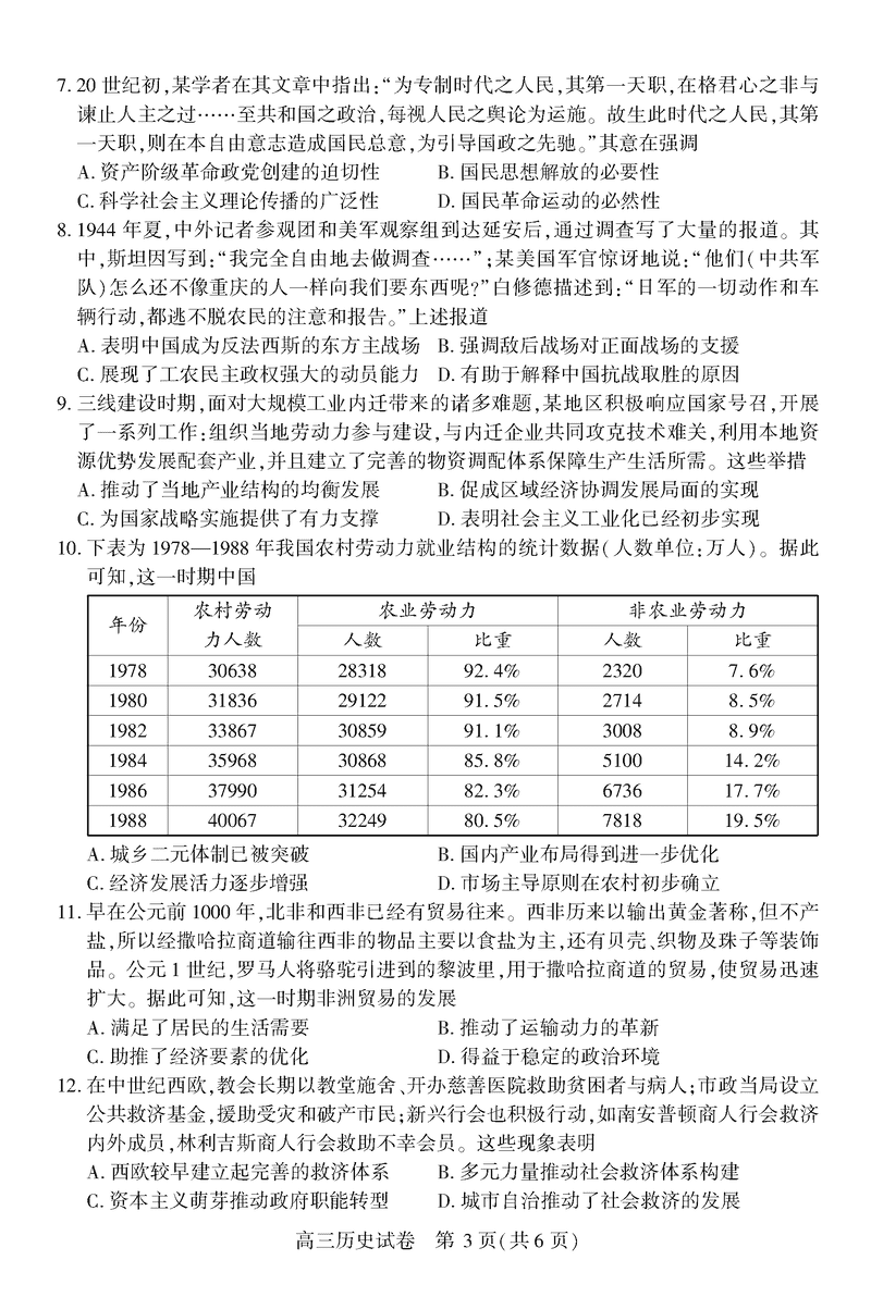 2025年湖北七市州高三3月联合统一调研测试历史试题及答案