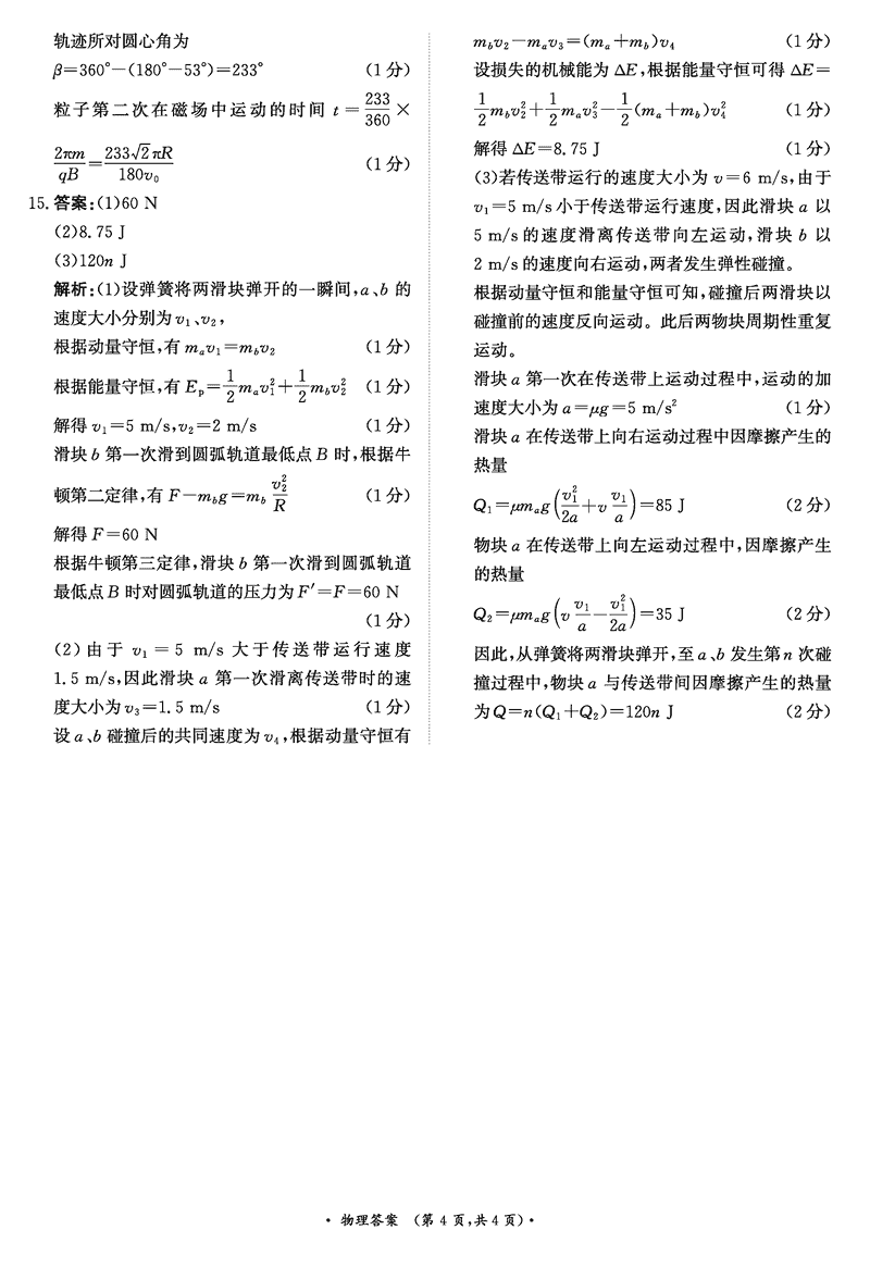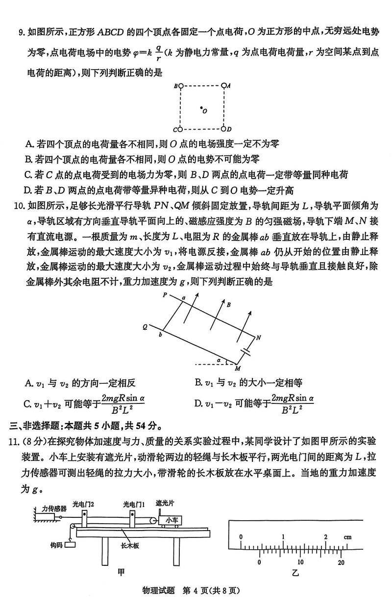 河南青桐鸣大联考2025届高三下学期3月月考物理试题及答案