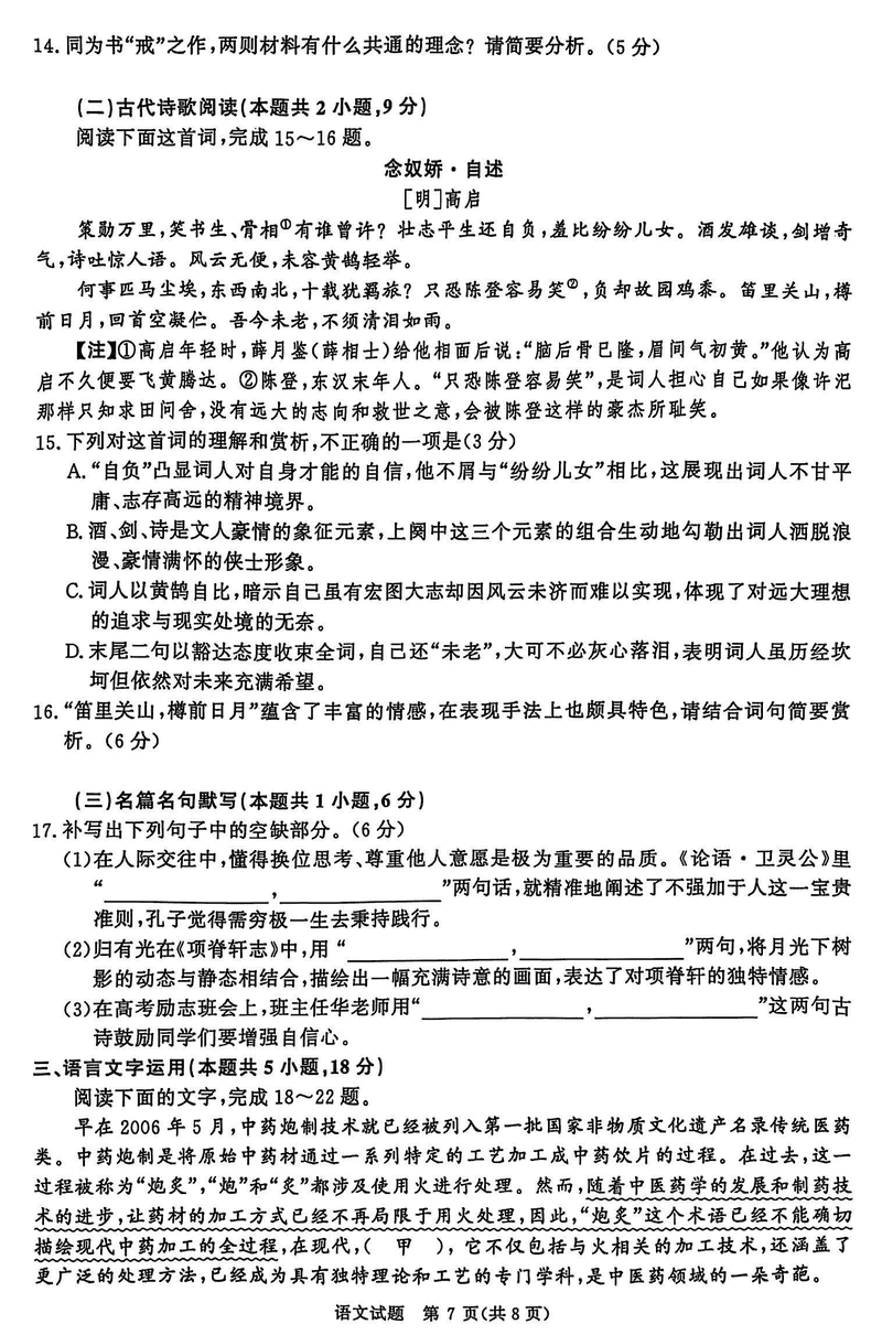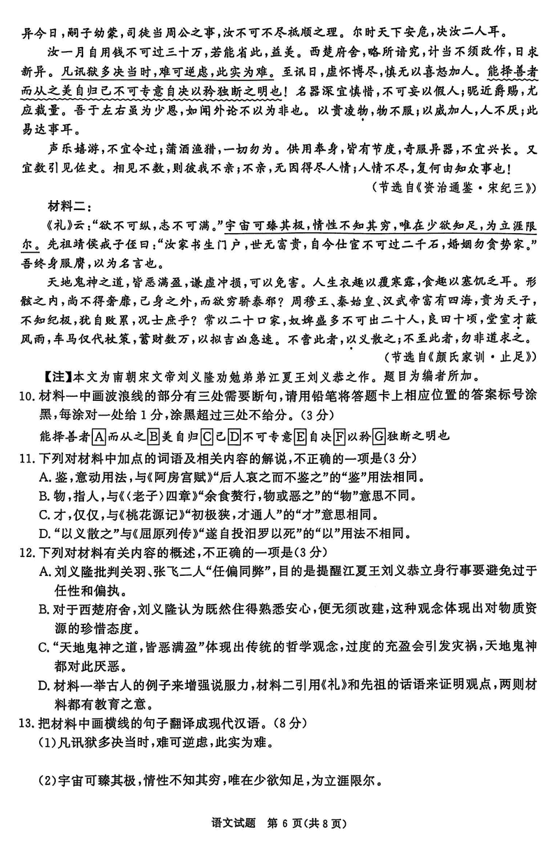 河南青桐鸣大联考2025届高三下学期3月月考语文试题及答案