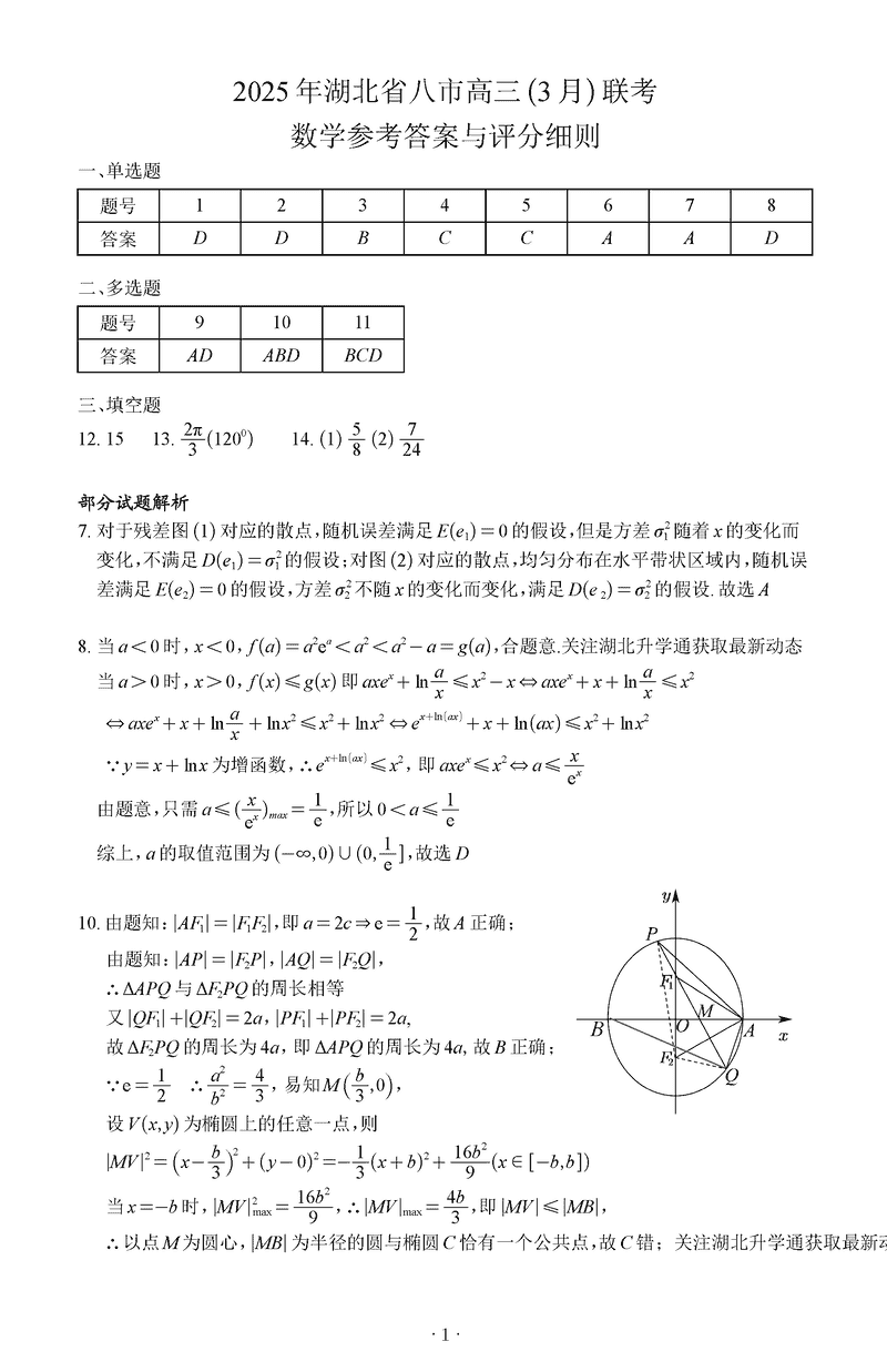 2025年湖北省八市高三3月联考数学试题及答案 时间:2025-03-14 湖北 数学试题 2025年湖北省八市高三3月联考数学考试已于近日开考,为方便考生考后及时查看考试情况,查漏补缺、弥补不足,本文整理了试题答案解析相关信息! 汇总:2025年湖北省八市高三3月联考试题及答案汇总 数学试题及答案解析
