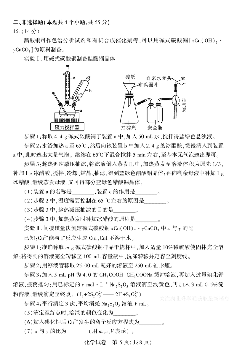 2025年湖北省八市高三3月联考化学试题及答案 时间:2025-03-15 湖北 理综试题 2025年湖北省八市高三3月联考化学考试已于近日开考,为方便考生考后及时查看考试情况,查漏补缺、弥补不足,本文整理了试题答案解析相关信息! 汇总:2025年湖北省八市高三3月联考试题及答案汇总 化学试题及答案解析