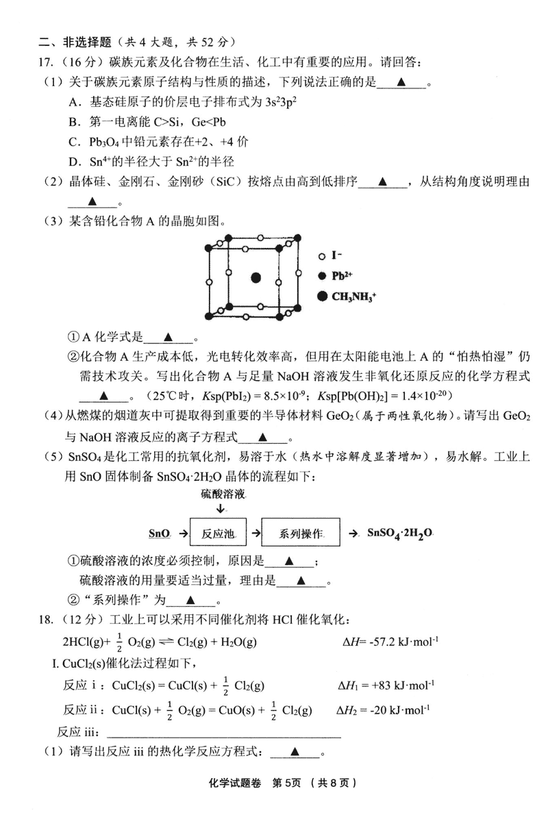 金丽衢十二校2025届高三第二次联考化学试题及答案