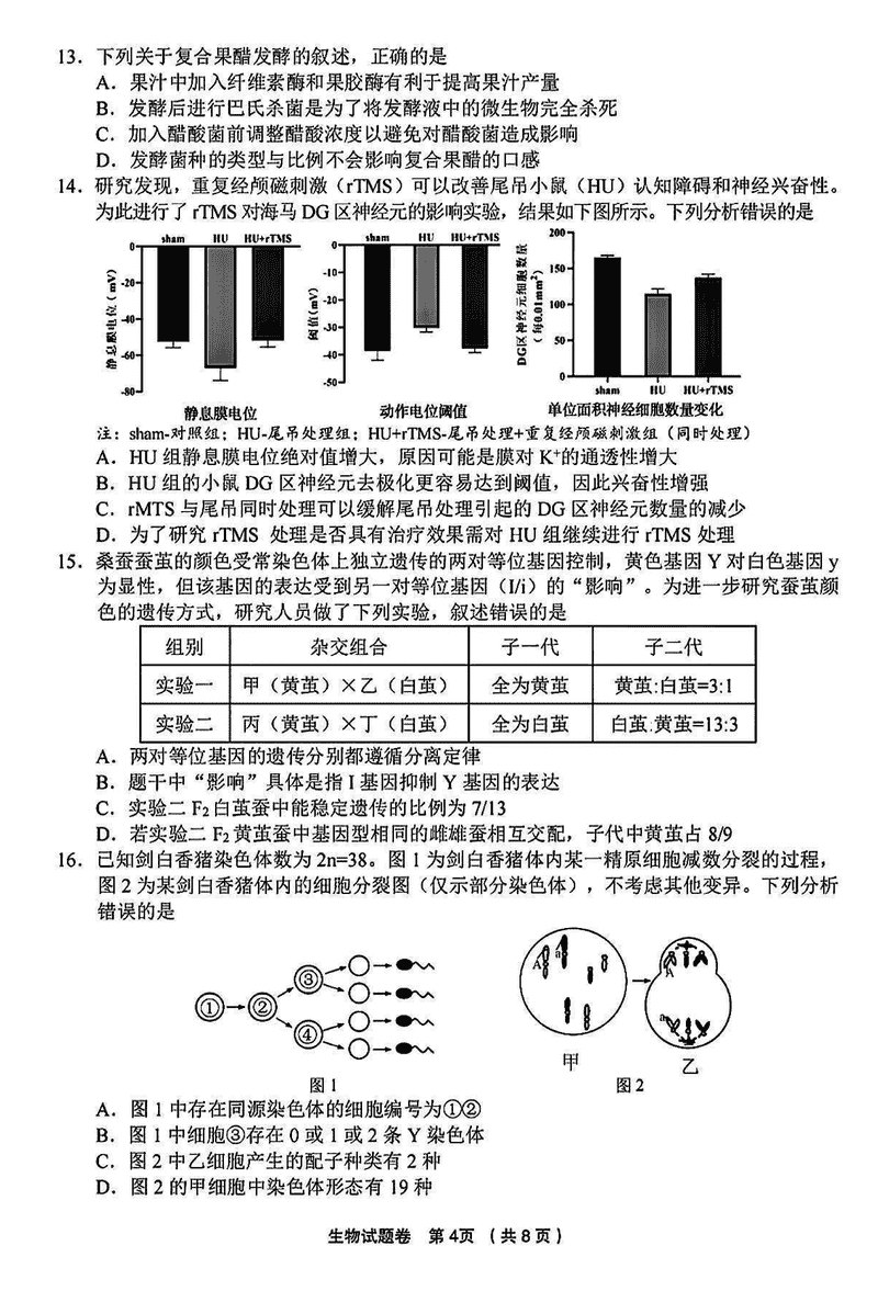 金丽衢十二校2025届高三第二次联考生物试题及答案