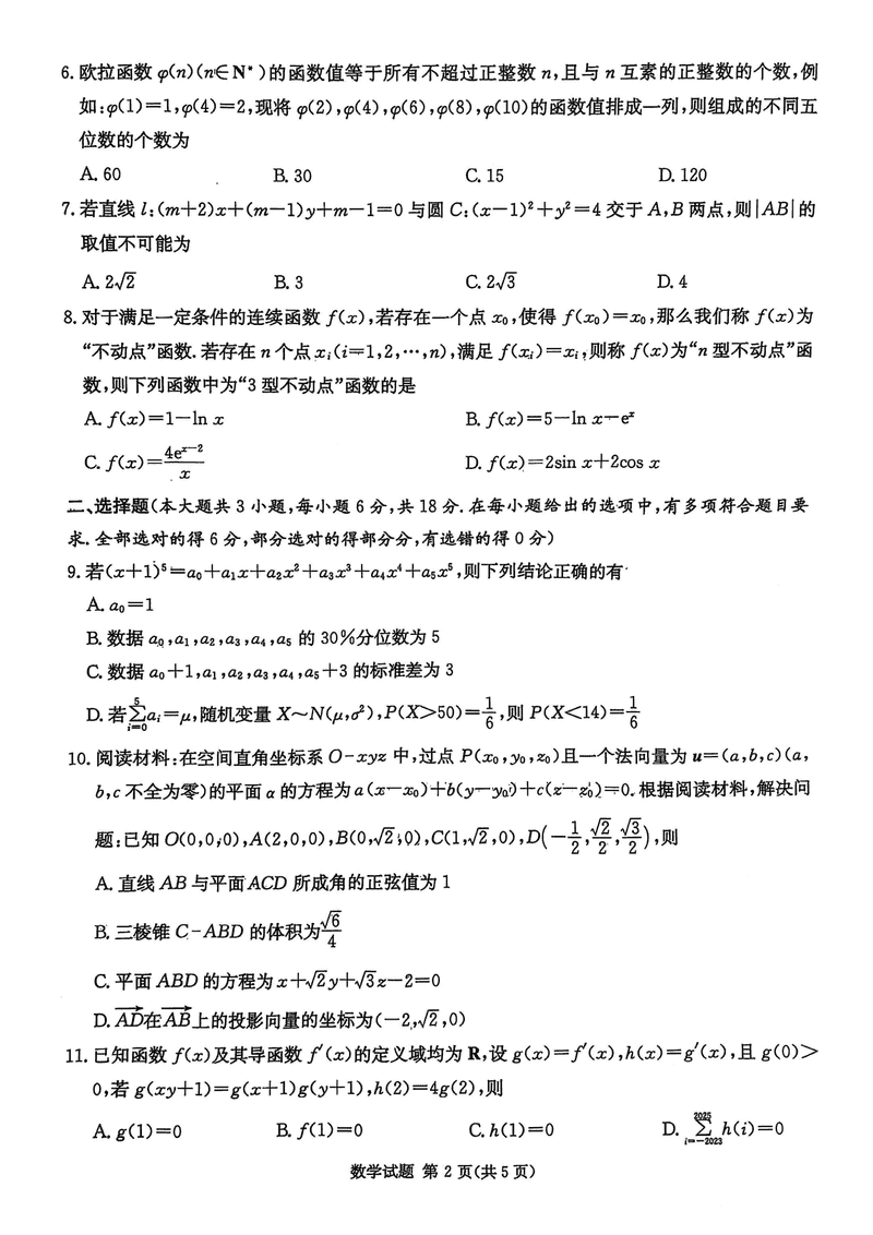 湖南省九校联盟2025届高三下学期第二次联考数学试题及答案
