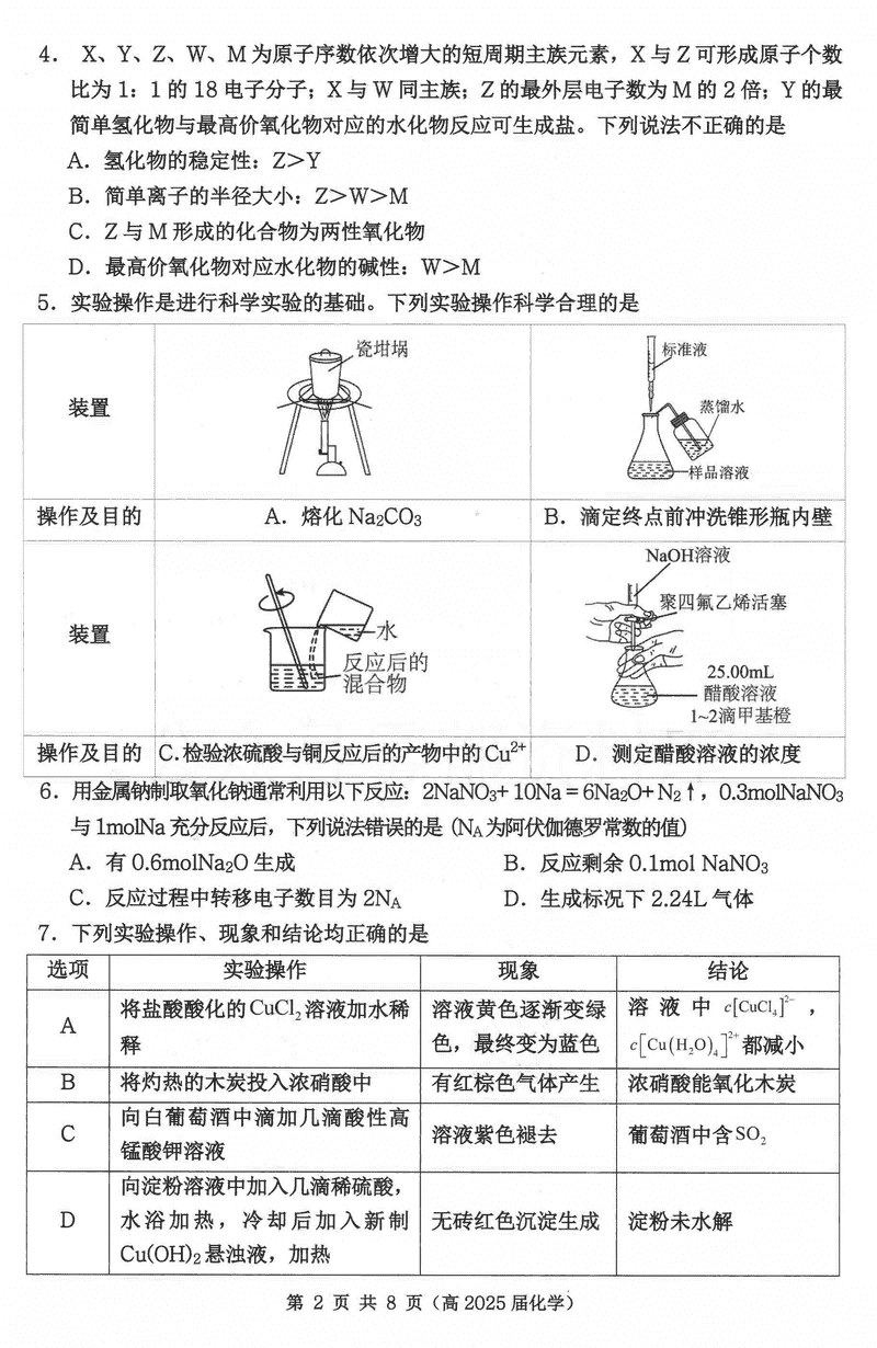 重庆名校联盟2024-2025学年度高三下第一次联考化学试题及答案