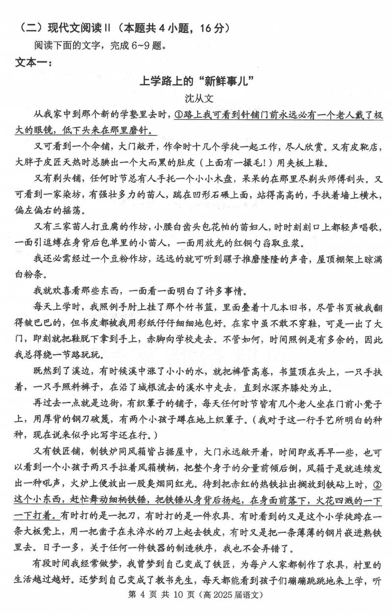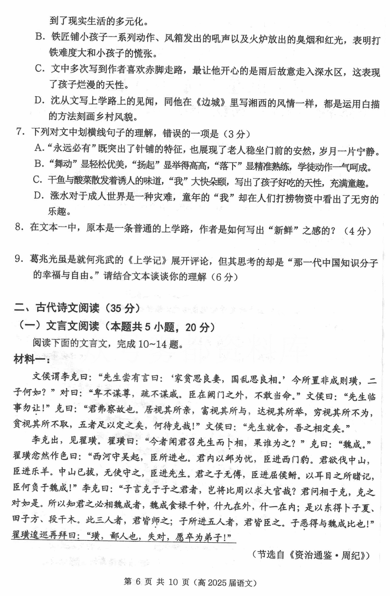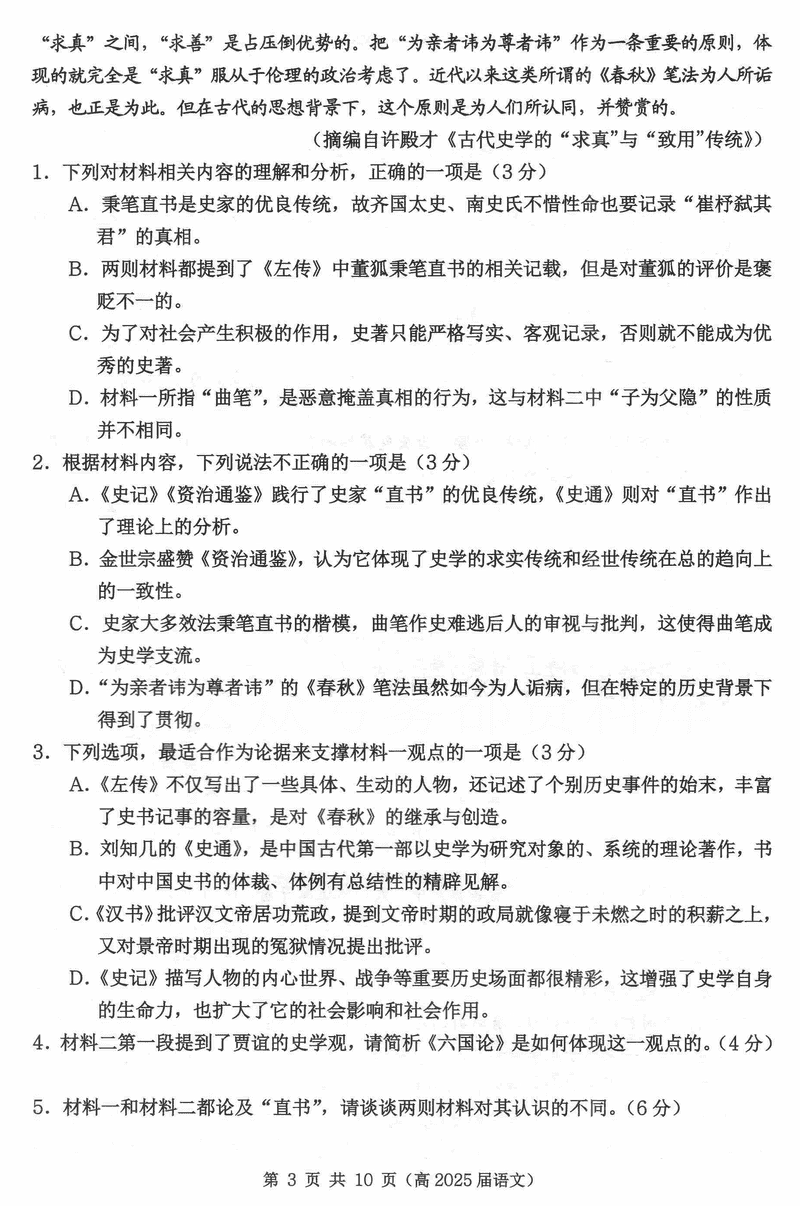 重庆名校联盟2024-2025学年度高三下第一次联考语文试题及答案