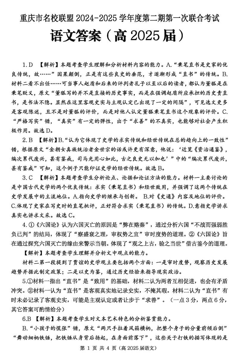 重庆名校联盟2024-2025学年度高三下第一次联考语文考试已于近日开考,为方便考生考后及时查看考试情况,查漏补缺、弥补不足,本文整理了试题答案解析相关信息!