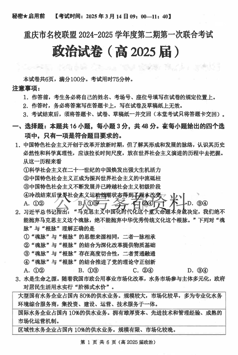 重庆名校联盟2024-2025学年度高三下第一次联考政治考试已于近日开考,为方便考生考后及时查看考试情况,查漏补缺、弥补不足,本文整理了试题答案解析相关信息!