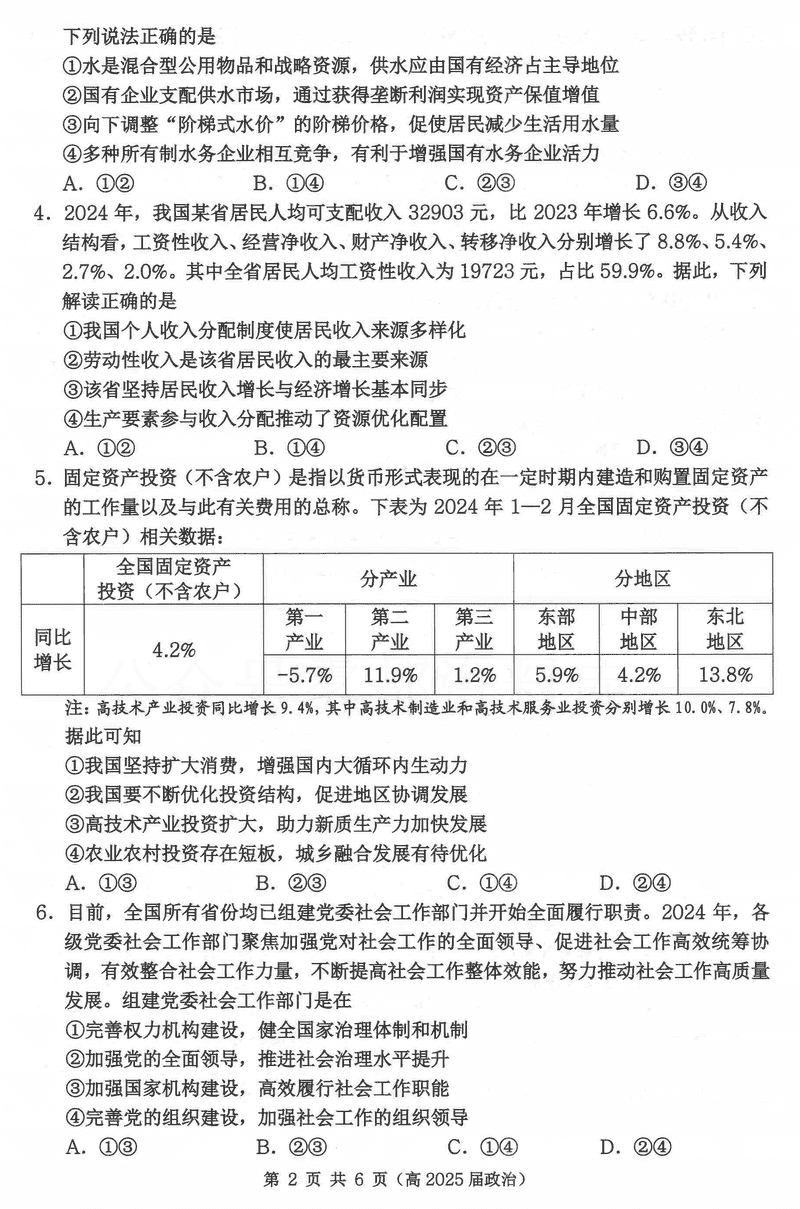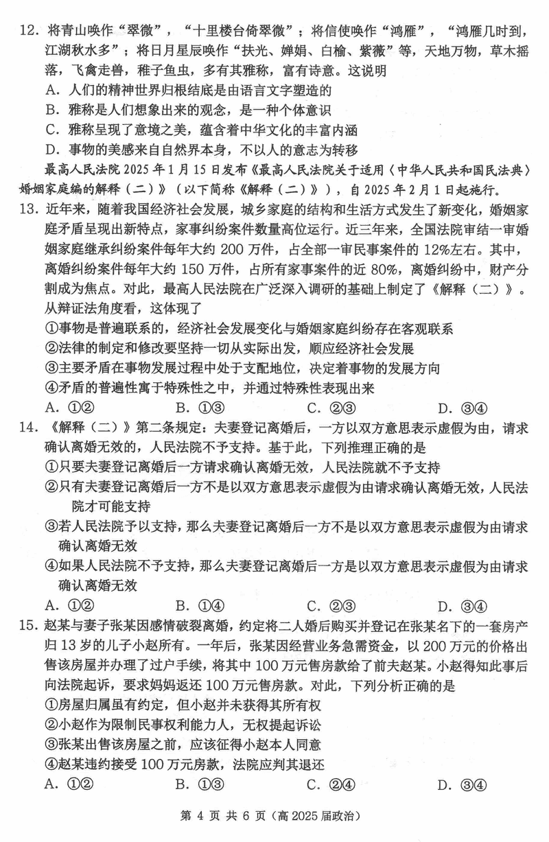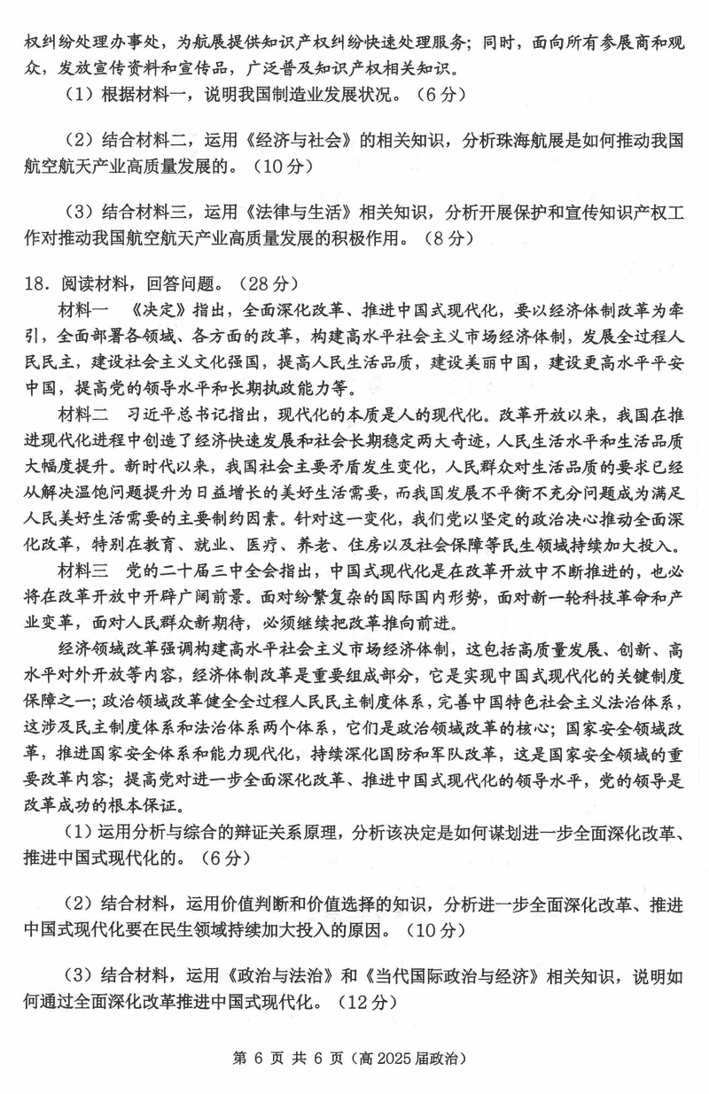 重庆名校联盟2024-2025学年度高三下第一次联考政治试题及答案