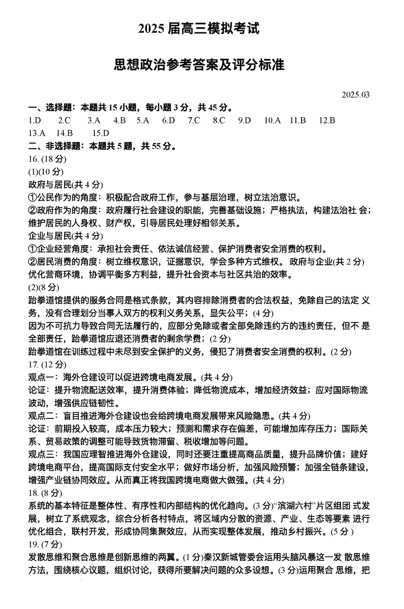 枣庄二调2025届高三模考政治试题及答案 时间:2025-03-20 山东 文综试题 枣庄二调2025届高三模考政治考试已于近日开考,为方便考生考后及时查看考试情况,查漏补缺、弥补不足,本文整理了试题答案解析相关信息! 汇总:枣庄二调2025届高三模拟考试试题及答案汇总 政治试题及答案解析