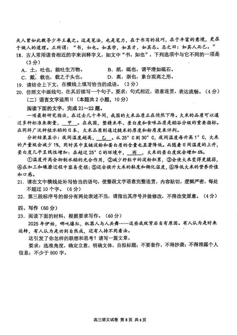 南京市、盐城市2025届高三一模语文试题及答案 时间:2025-03-20 江苏 语文试题 南京市、盐城市2025届高三一模语文考试已于近日开考,为方便考生考后及时查看考试情况,查漏补缺、弥补不足,本文整理了试题答案解析相关信息! 汇总:南京市、盐城市2025届高三一模试题及答案汇总 语文试题及答案解析