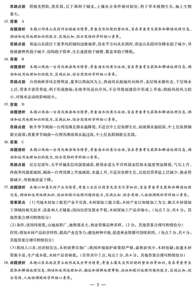 地理试题及答案解析