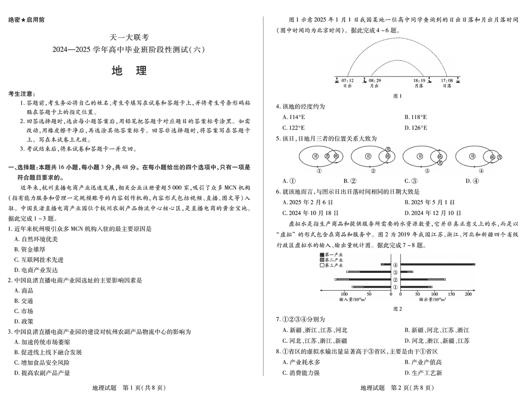 河南省天一大联考2024-2025学年高三阶段性测试(六)地理试题及答案