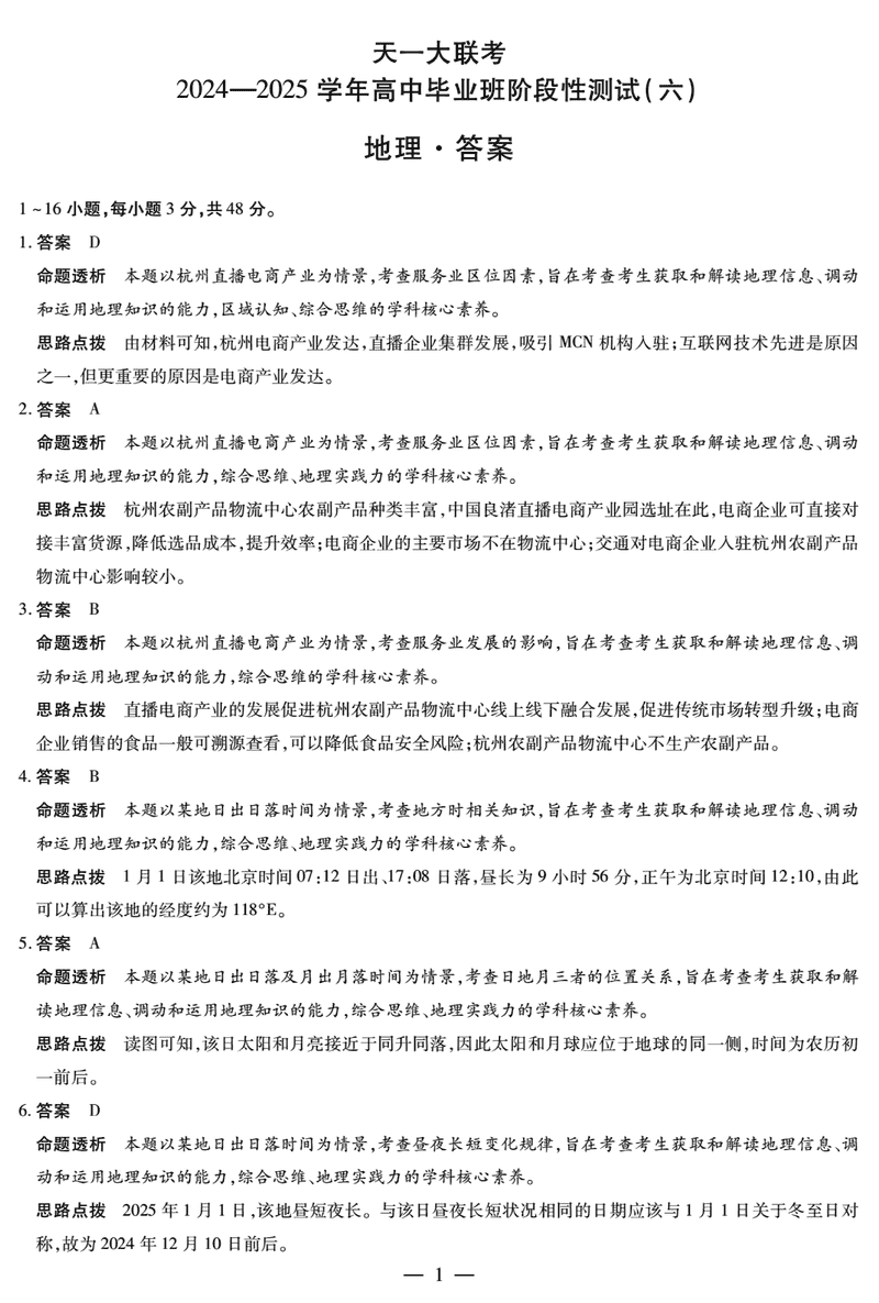 河南省天一大联考2024-2025学年高三阶段性测试(六)地理考试已于近日开考,为方便考生考后及时查看考试情况,查漏补缺、弥补不足,本文整理了试题答案解析相关信息!