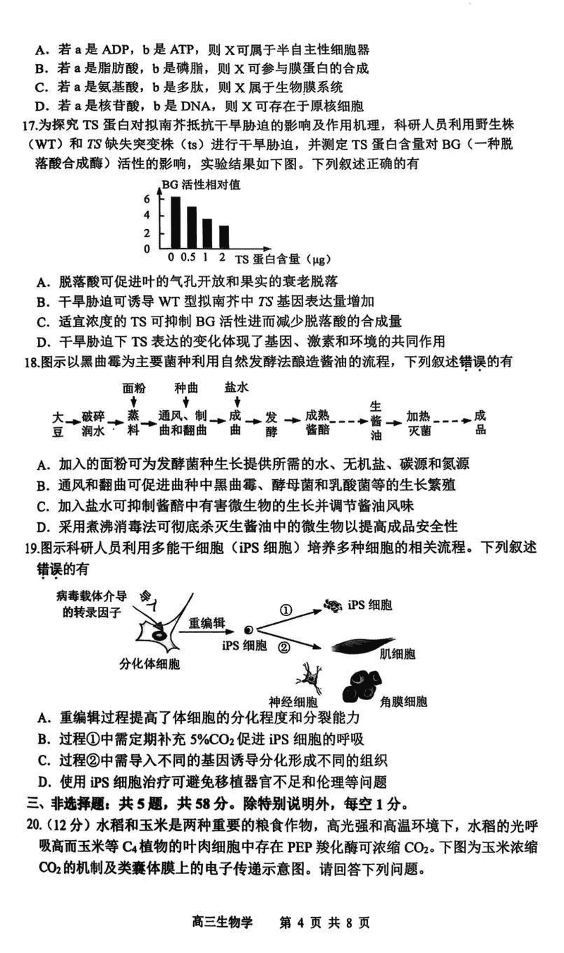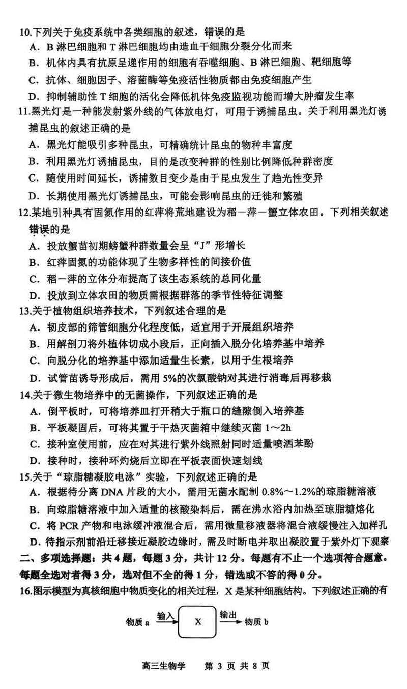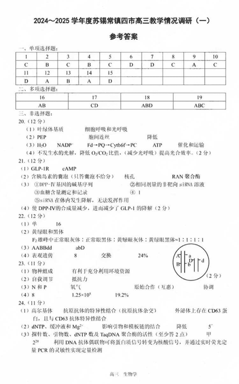 2025届苏锡常镇四市一模高三下学期教学情况调研(一)生物考试已于近日开考,为方便考生考后及时查看考试情况,查漏补缺、弥补不足,本文整理了试题答案解析相关信息!