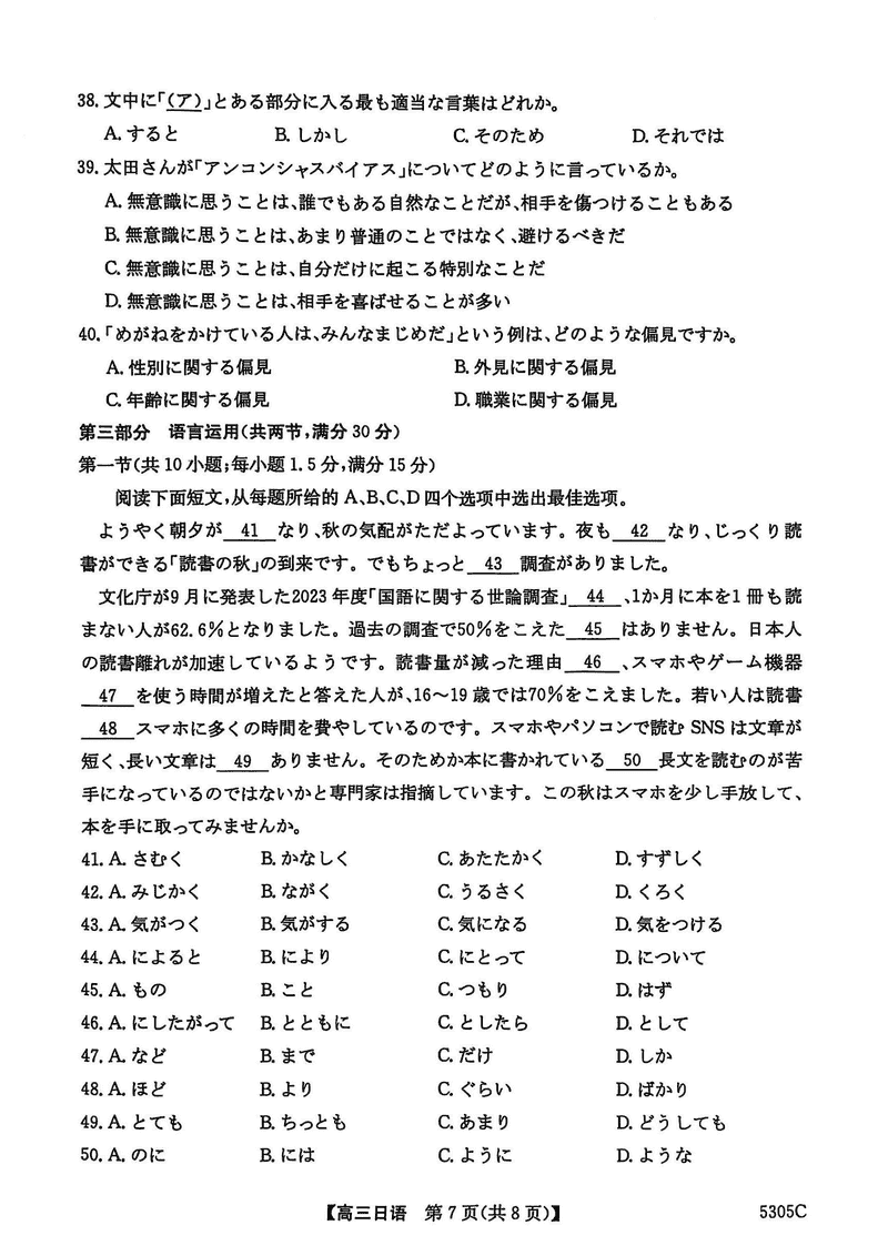 南宁二模2025届高三第二次适应性测试日语试题及答案