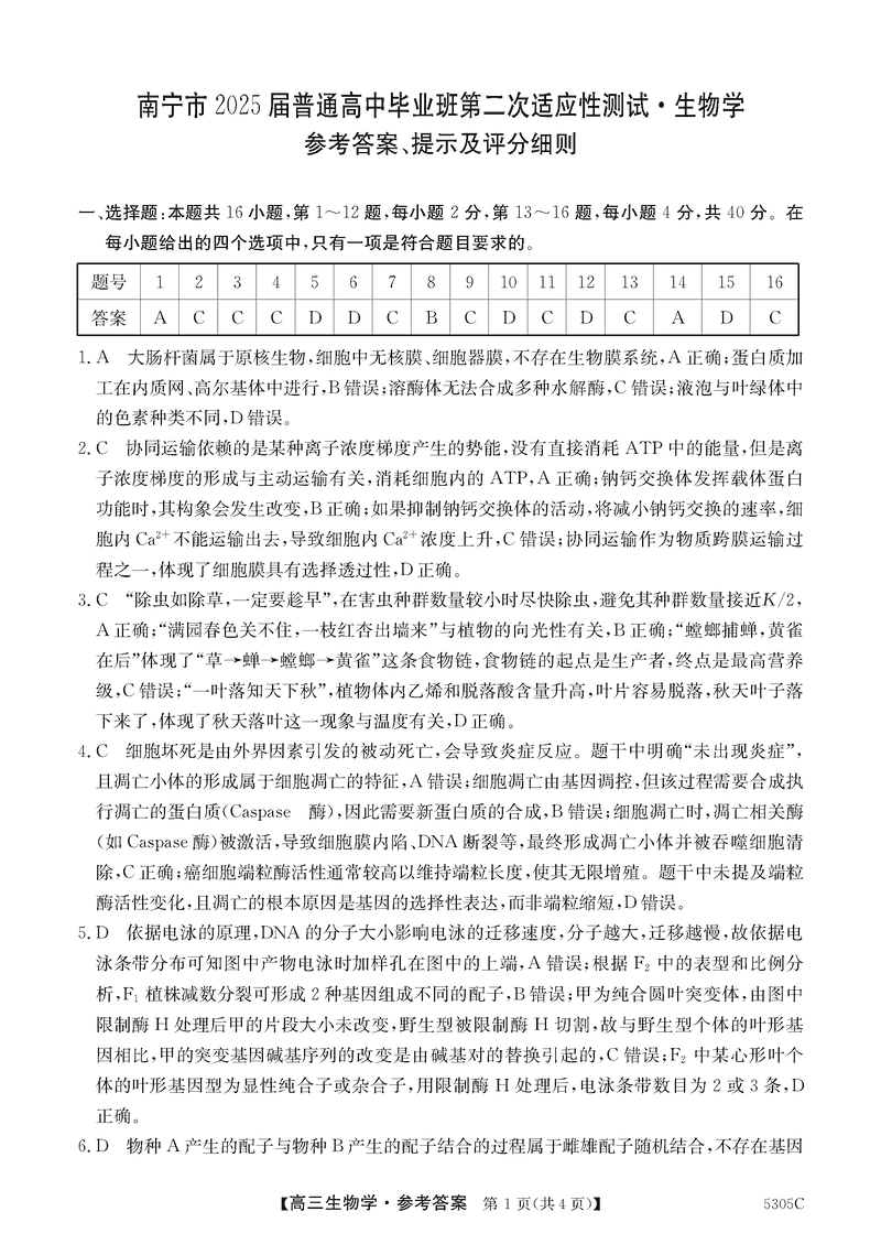 南宁二模2025届高三第二次适应性测试生物考试已于近日开考,为方便考生考后及时查看考试情况,查漏补缺、弥补不足,本文整理了试题答案解析相关信息!