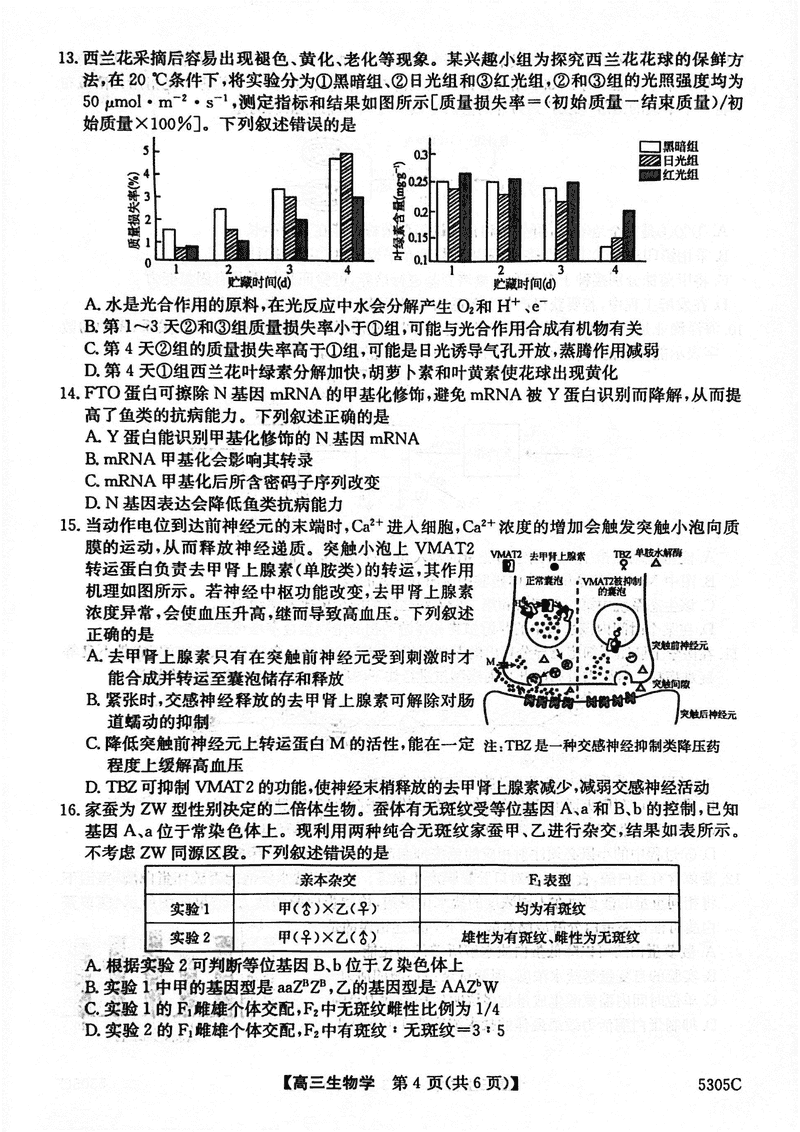 南宁二模2025届高三第二次适应性测试生物试题及答案