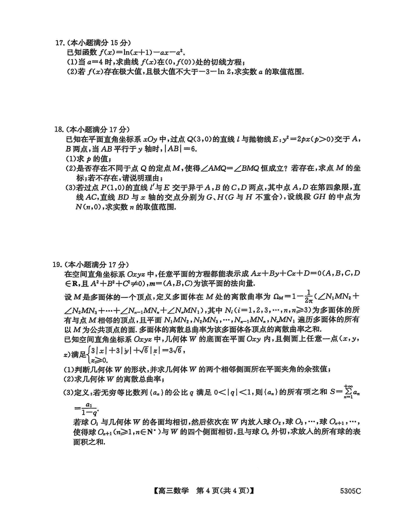 南宁二模2025届高三第二次适应性测试数学试题及答案