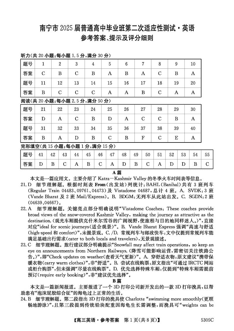 南宁二模2025届高三第二次适应性测试英语考试已于近日开考,为方便考生考后及时查看考试情况,查漏补缺、弥补不足,本文整理了试题答案解析相关信息!