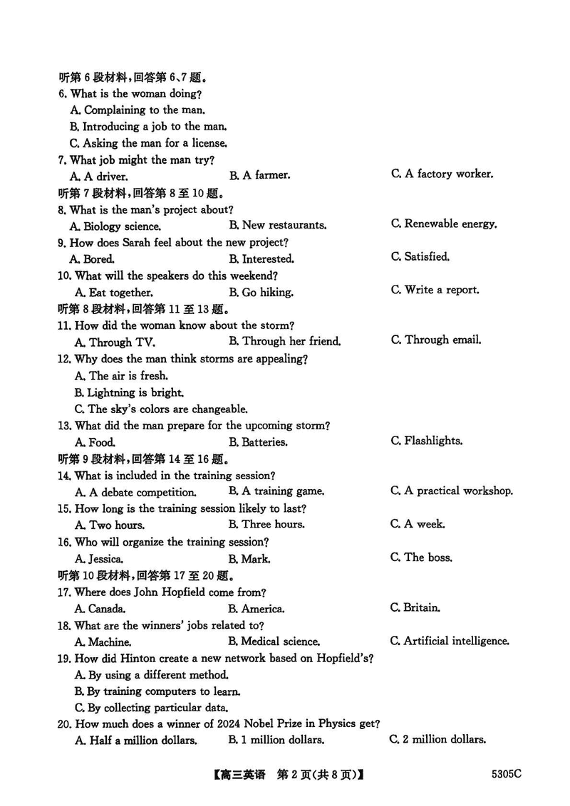 南宁二模2025届高三第二次适应性测试英语试题及答案