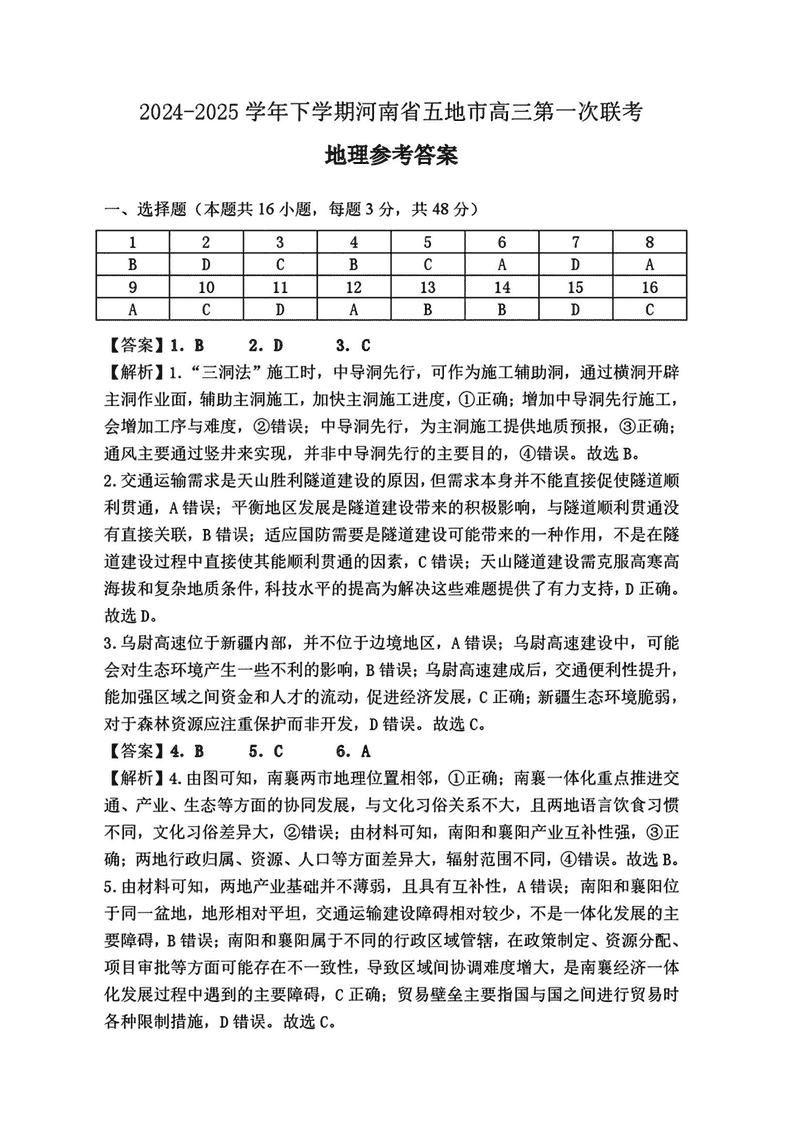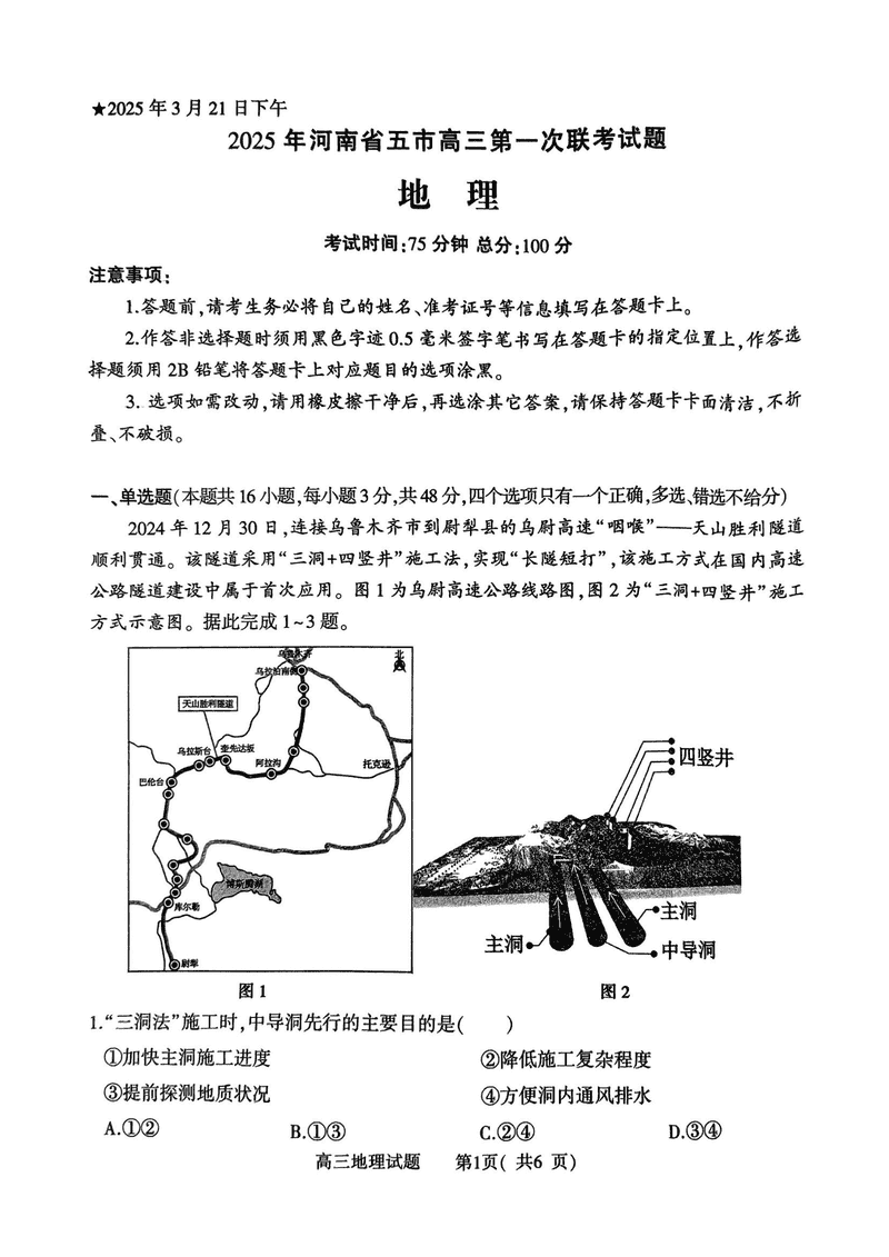 河南(驻马店、漯河、南阳、信阳、三门峡)五市一模2025年高三第一次联考地理考试已于近日开考,为方便考生考后及时查看考试情况,查漏补缺、弥补不足,本文整理了试题答案解析相关信息!
