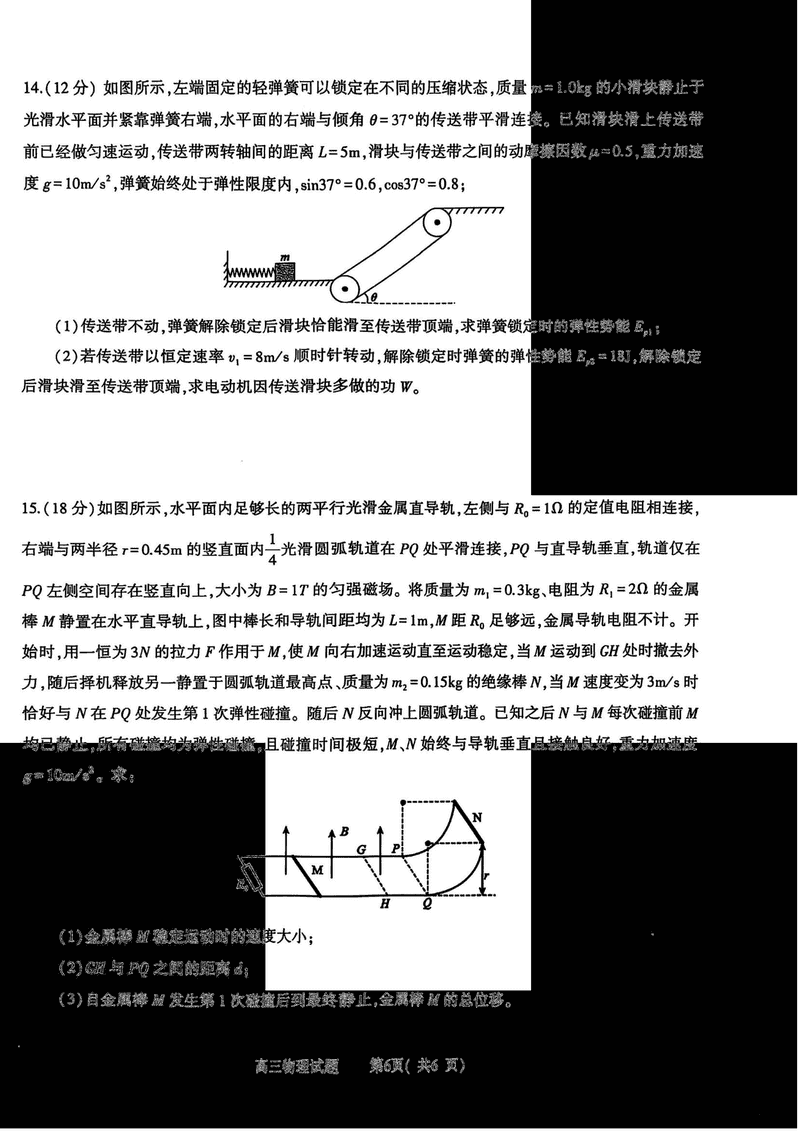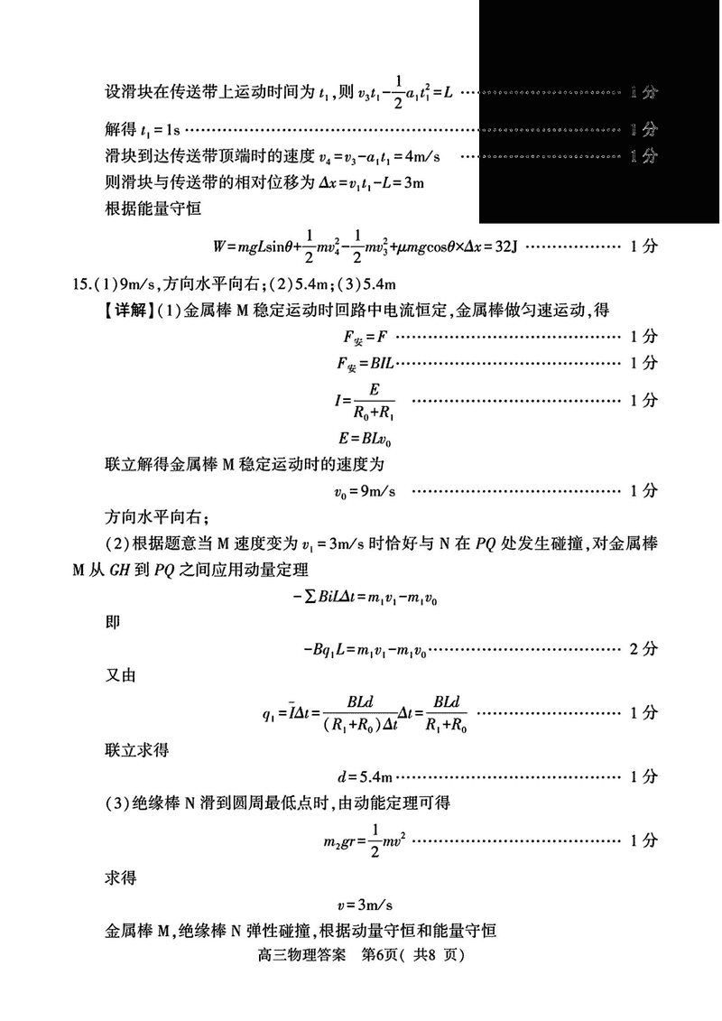 河南五市一模2025年高三第一次联考物理试题及答案