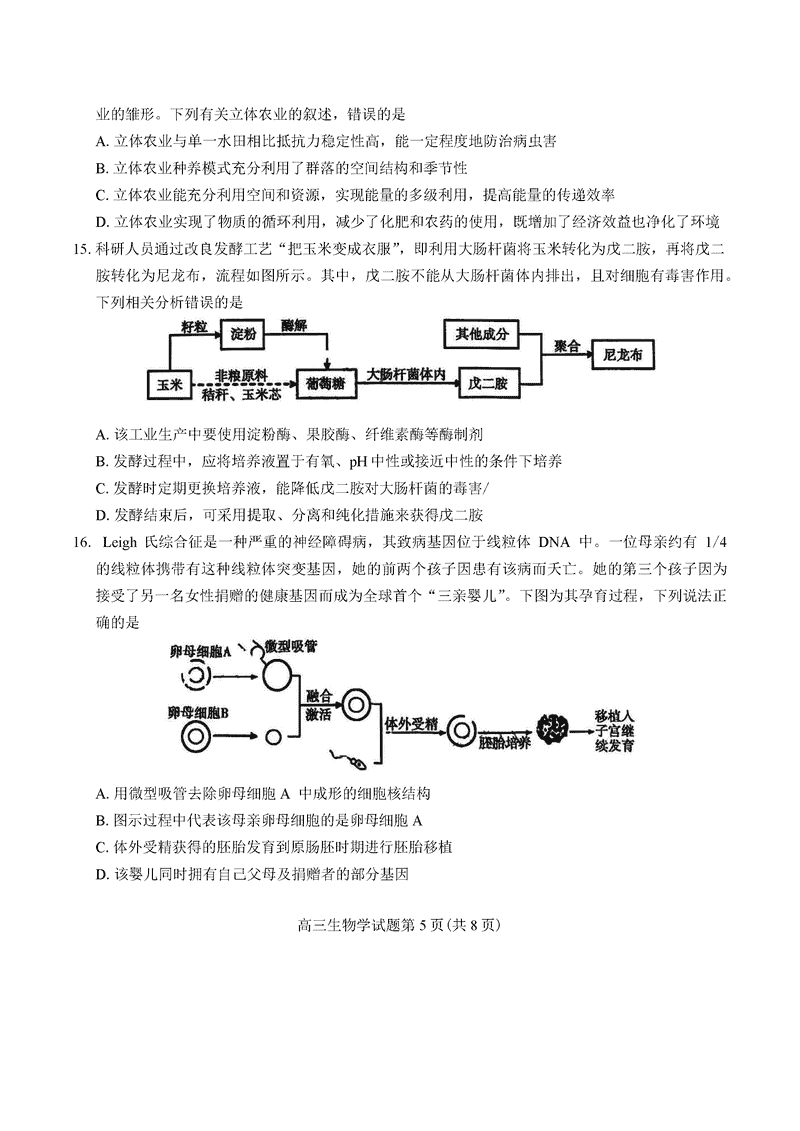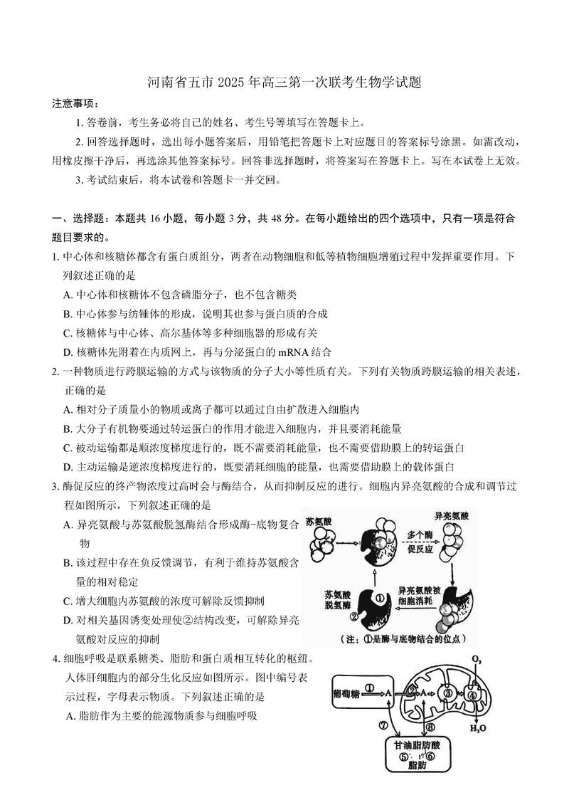河南(驻马店、漯河、南阳、信阳、三门峡)五市一模2025年高三第一次联考生物考试已于近日开考,为方便考生考后及时查看考试情况,查漏补缺、弥补不足,本文整理了试题答案解析相关信息!