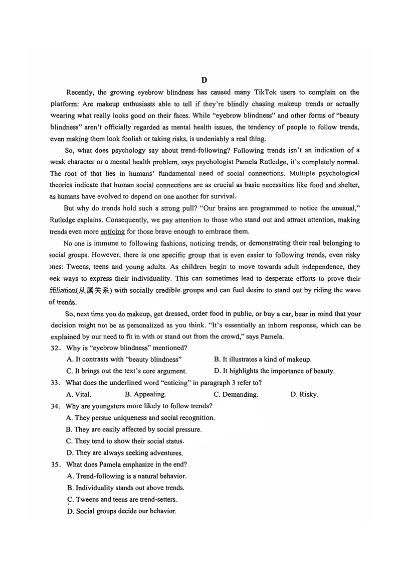四川 英语试题