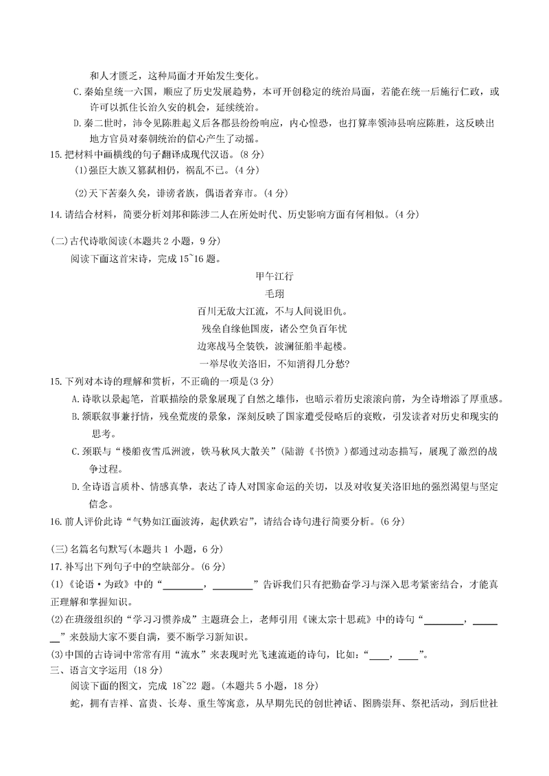 乐山市、自贡市、宜宾市2025届高三第二次诊断考语文试题及答案