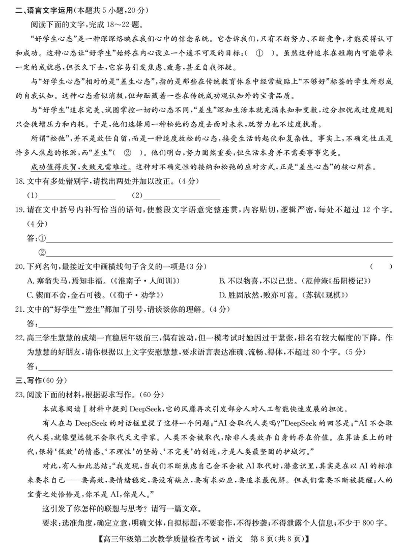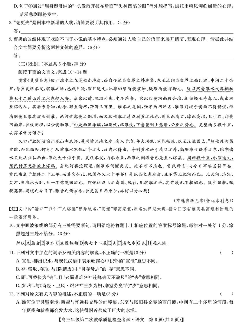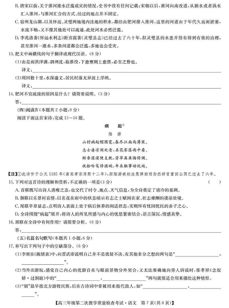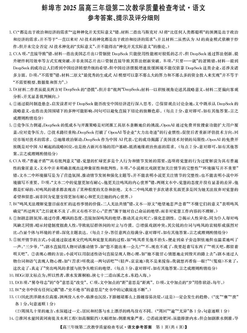 蚌埠市2025届高三第二次教学质检语文试题及答案 时间:2025-03-24 安徽 语文试题 蚌埠市2025届高三第二次教学质检语文考试已于近日开考,为方便考生考后及时查看考试情况,查漏补缺、弥补不足,本文整理了试题答案解析相关信息! 汇总:蚌埠市2025届高三第二次教学质量检查试题及答案汇总 语文试题及答案解析