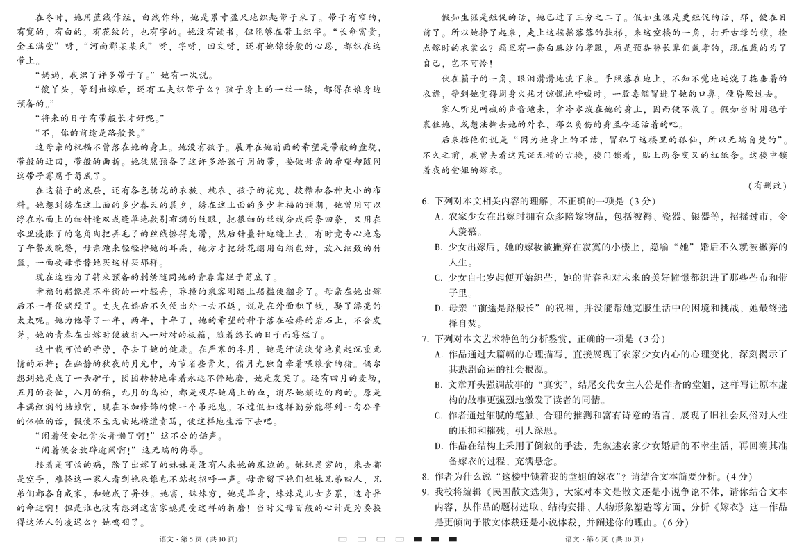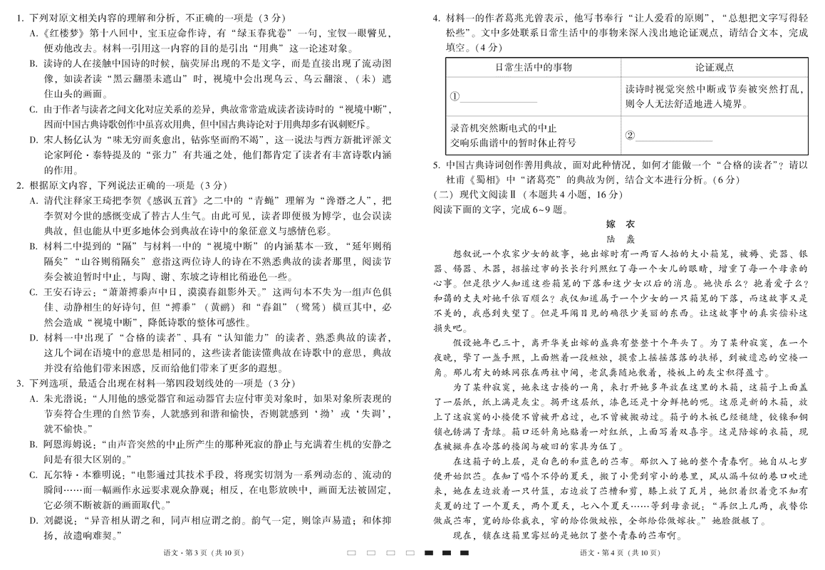 2025届云南三校高三高考备考实用性联考卷(七)语文试题及答案汇总