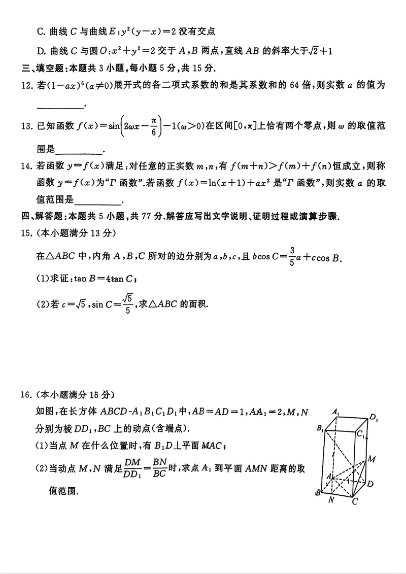 2025届八省八校T8联考高三3月联合测评数学试题及答案汇总