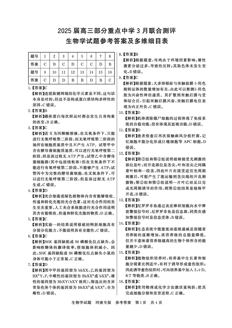 2025届八省八校T8联考高三3月联合测评生物(河南版)考试已于近日开考,为方便考生考后及时查看考试情况,查漏补缺、弥补不足,本文整理了试题答案解析相关信息!