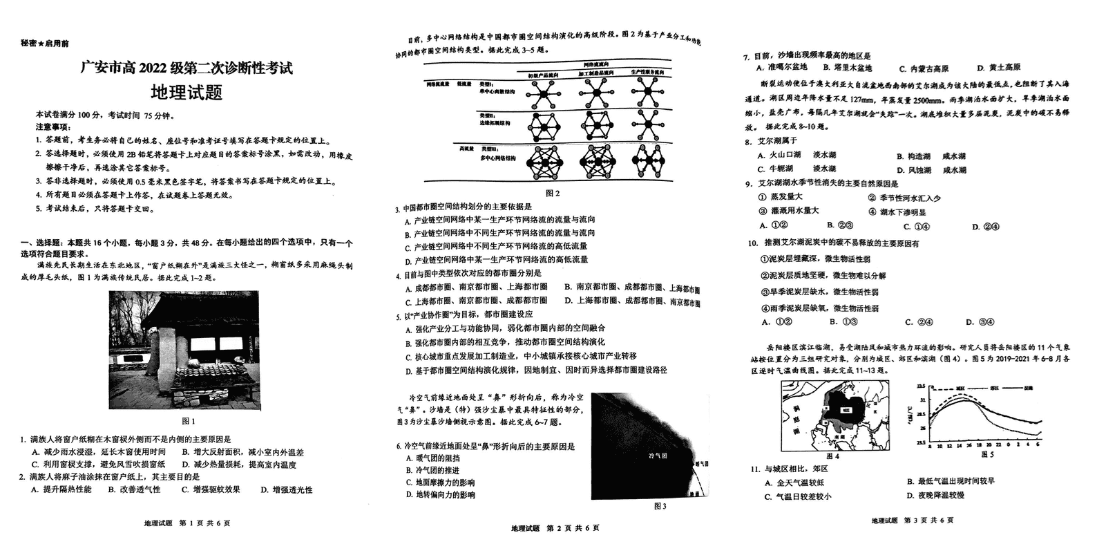 四川六市二诊2025届广安第二次诊断性地理试题及答案 时间:2025-03-31 四川 文综试题 四川六市二诊2025届广安第二次诊断性地理考试已于近日开考,为方便考生考后及时查看考试情况,查漏补缺、弥补不足,本文整理了试题答案解析相关信息! 汇总:四川六市二诊2025届第二次诊断性考试试题及答案汇总 地理试题及答案解析