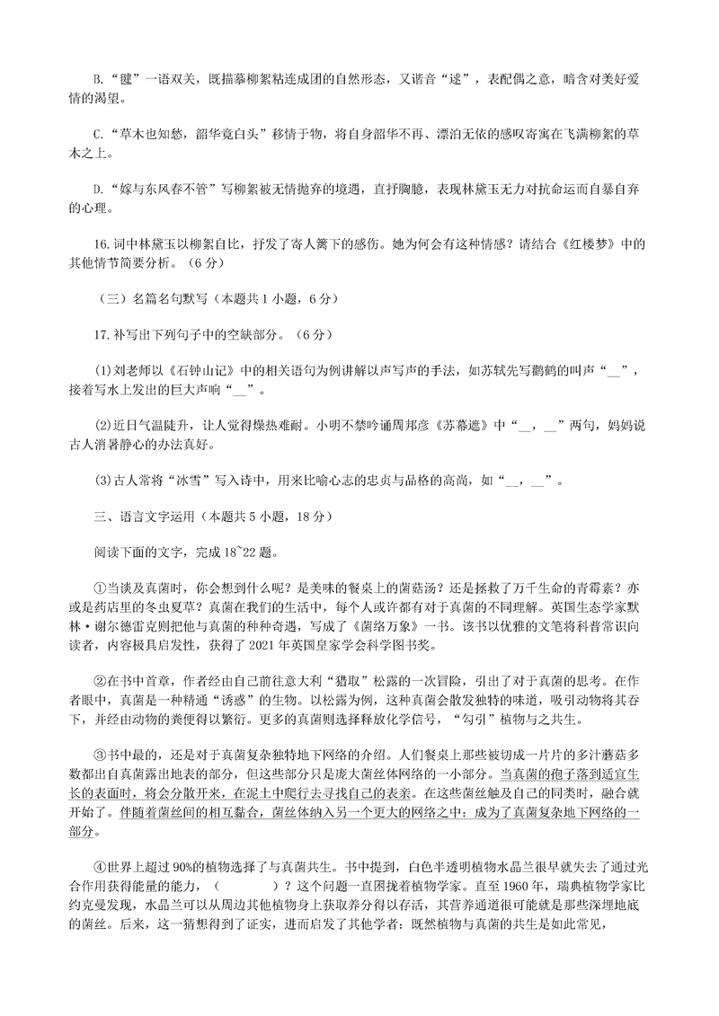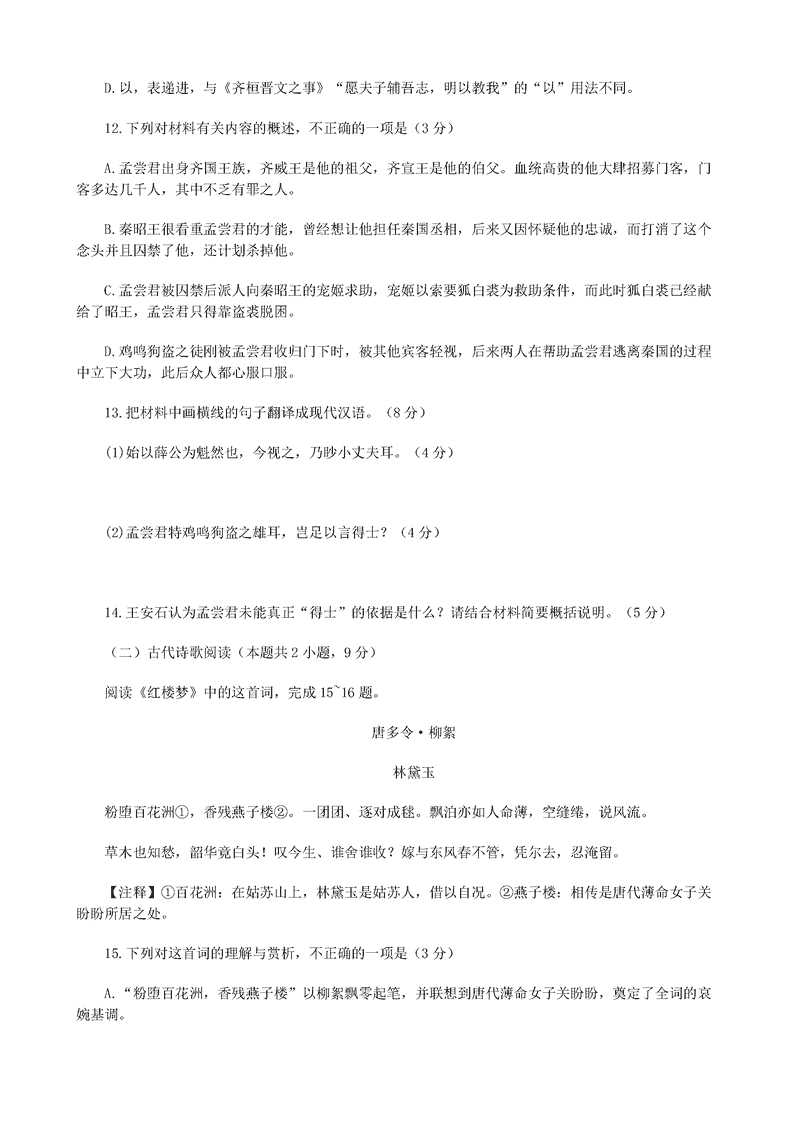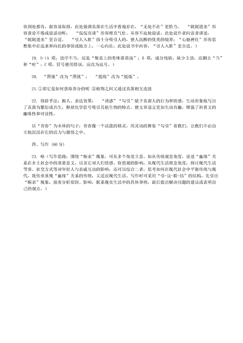 语文试题及答案解析