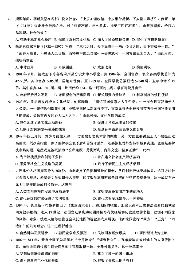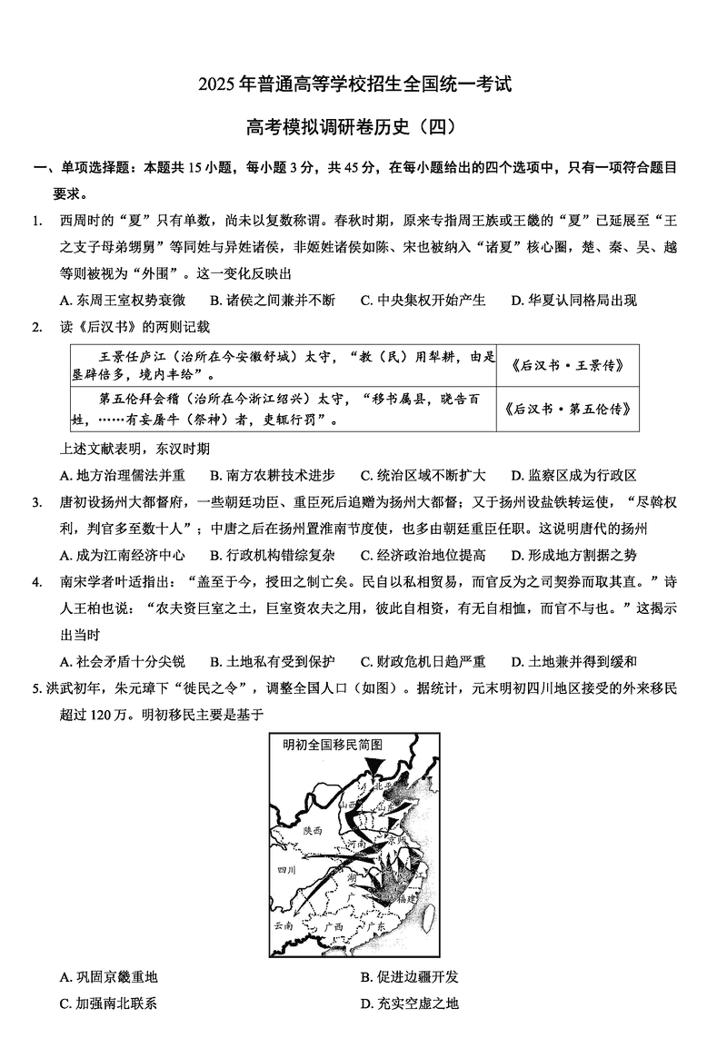 重庆康德卷2025年高考模拟调研(四)历史考试已于近日开考,为方便考生考后及时查看考试情况,查漏补缺、弥补不足,本文整理了试题答案解析相关信息!