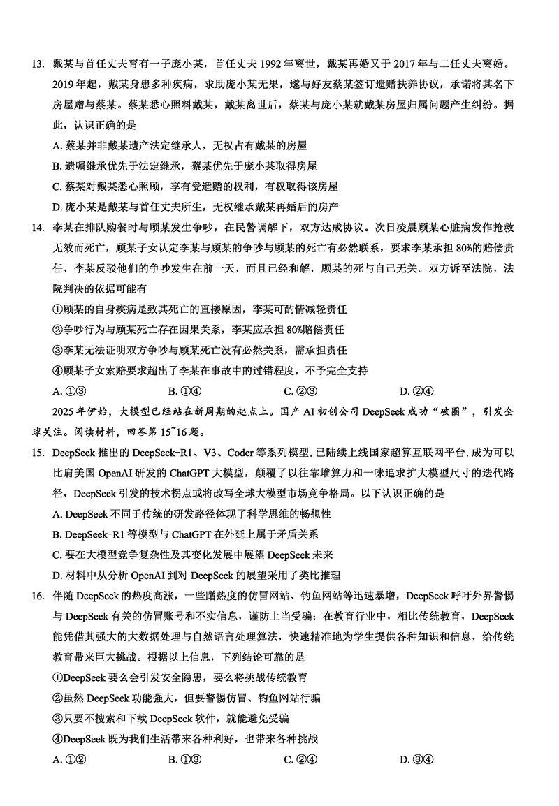 重庆康德卷2025年高考模拟调研(四)政治试题及答案 时间:2025-04-03 重庆 文综试题 重庆康德卷2025年高考模拟调研(四)政治考试已于近日开考,为方便考生考后及时查看考试情况,查漏补缺、弥补不足,本文整理了试题答案解析相关信息! 汇总:重庆康德卷2025年高考模拟调研(四)试题及答案汇总 政治试题及答案解析