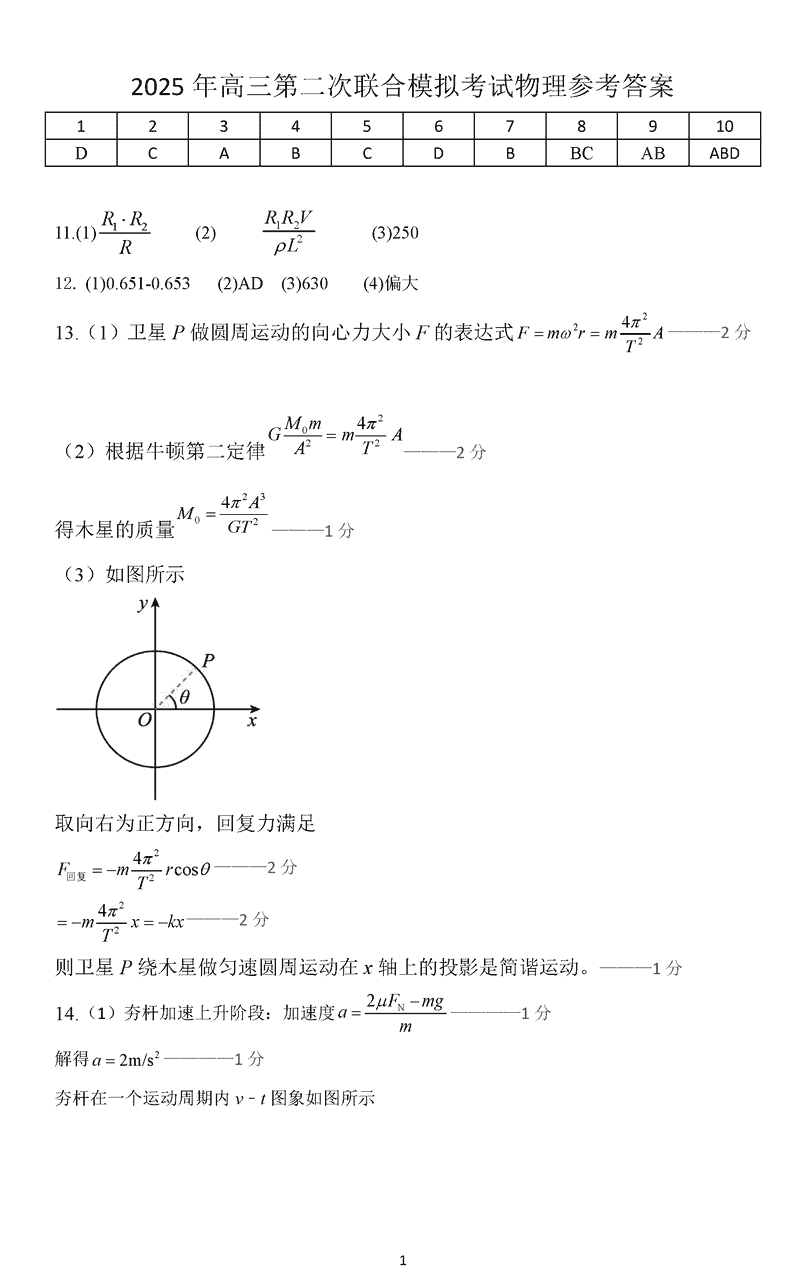 东北三省三校2025届高三二模物理试题及答案