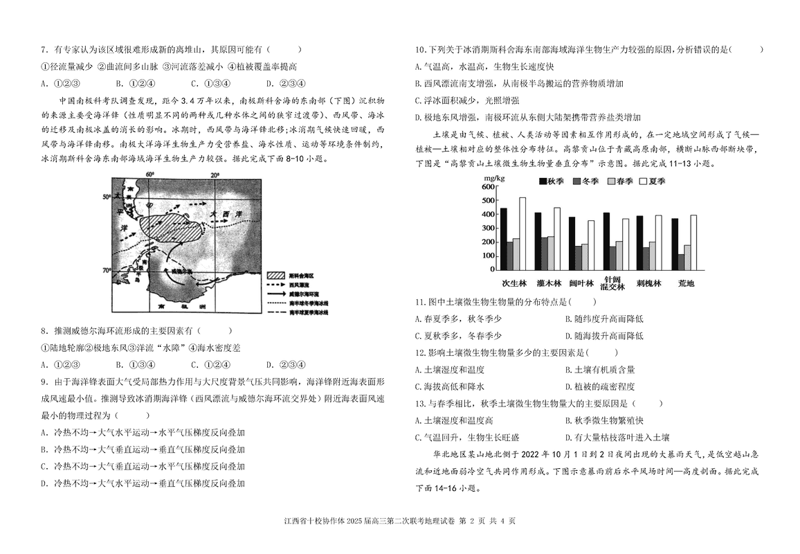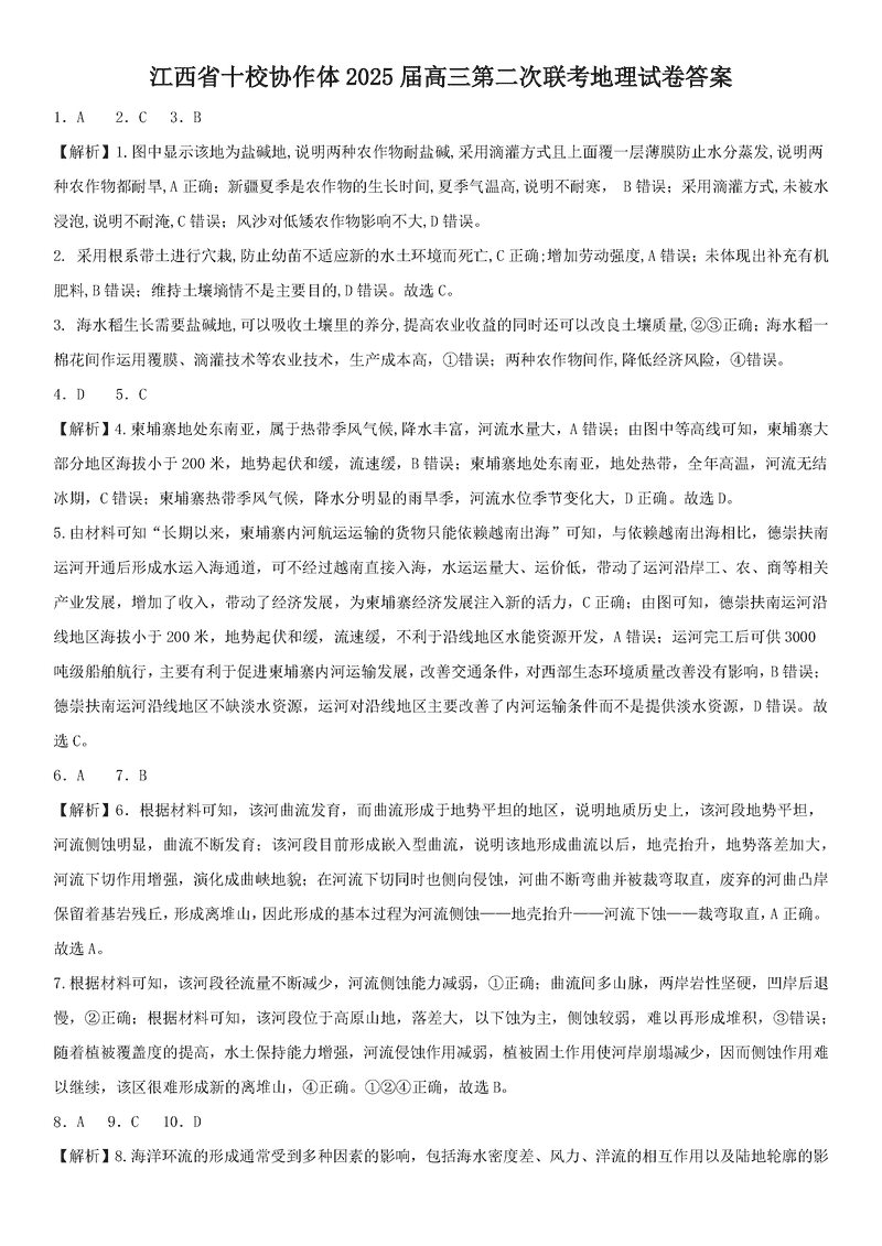 江西省十校协作体2025届高三第二次联考地理试题及答案