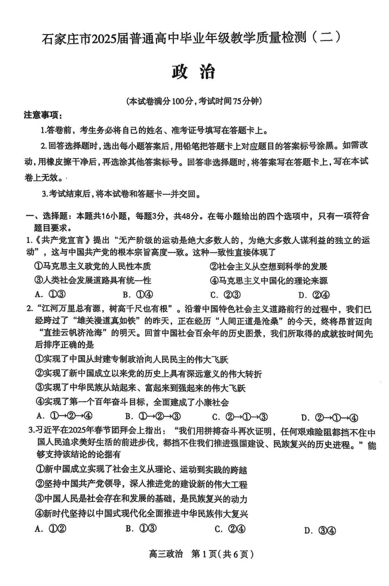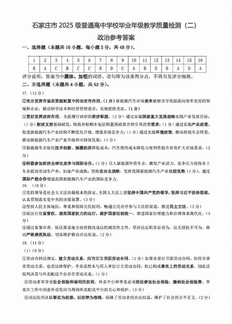 2025届石家庄市高三质检(二)政治考试已于近日开考,为方便考生考后及时查看考试情况,查漏补缺、弥补不足,本文整理了试题答案解析相关信息!