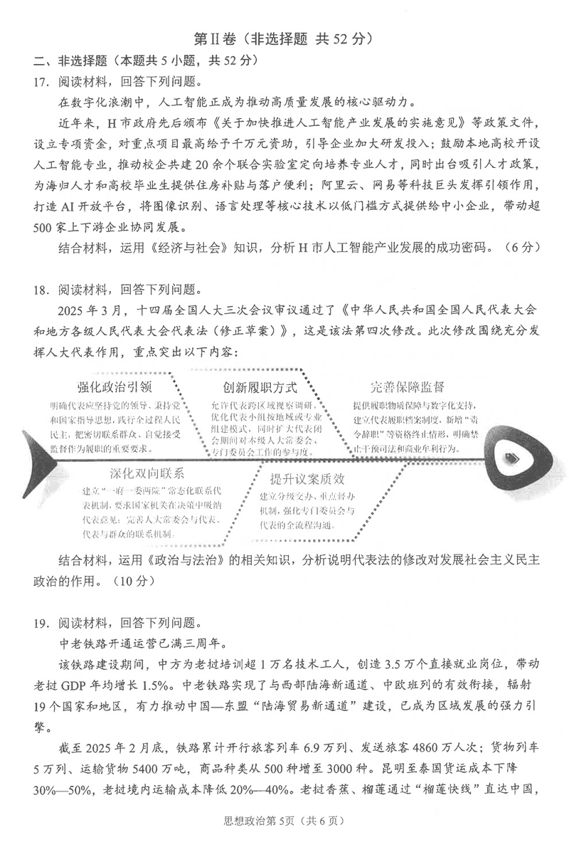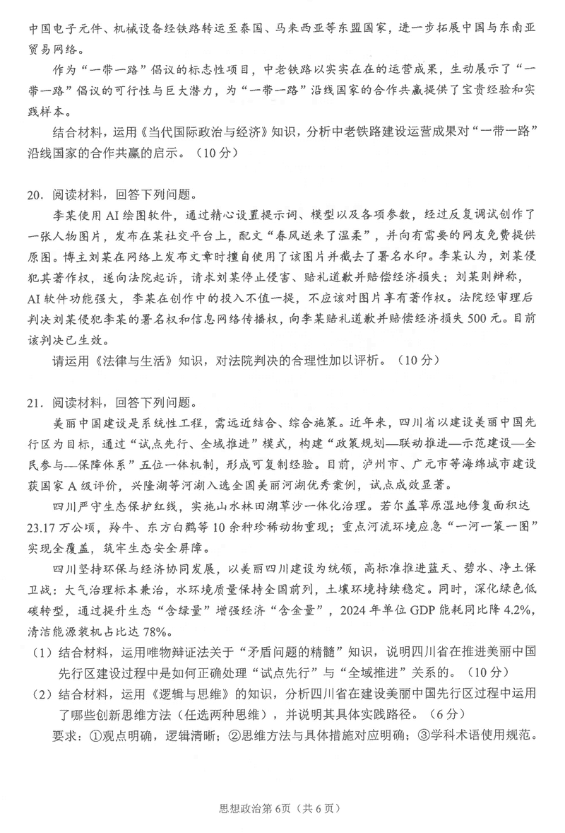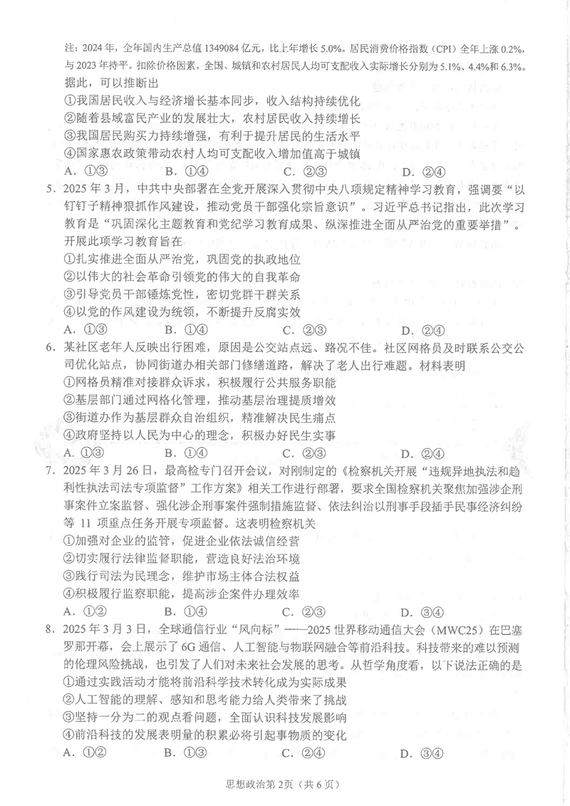 南充三诊高2025届高考适应性政治试题及答案 时间:2025-04-10 四川 文综试题 南充三诊高2025届高考适应性政治考试已于近日开考,为方便考生考后及时查看考试情况,查漏补缺、弥补不足,本文整理了试题答案解析相关信息! 汇总:南充三诊高2025届高考适应性考试试题及答案汇总 政治试题及答案解析